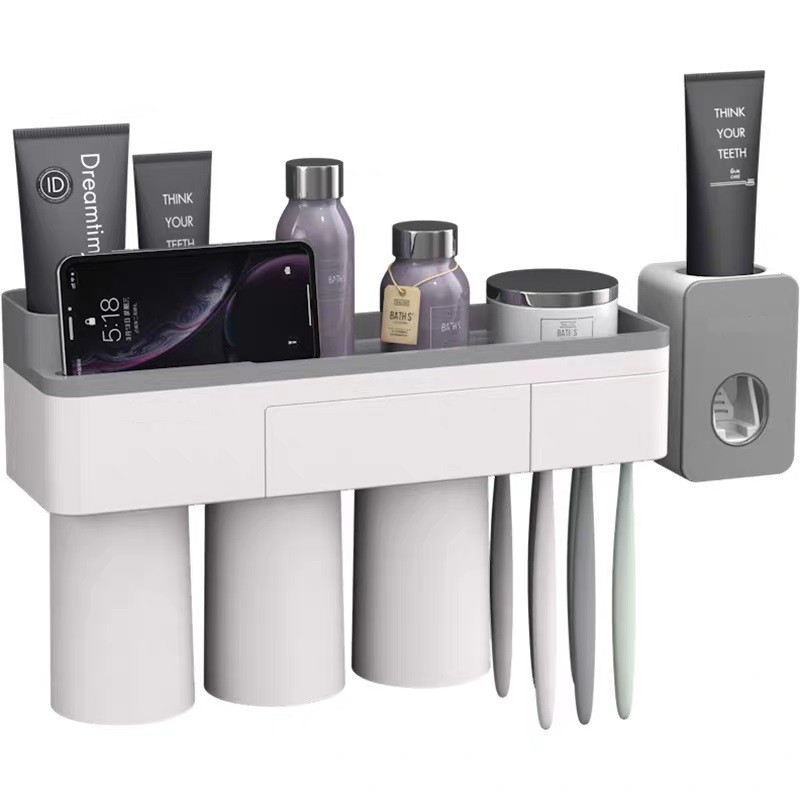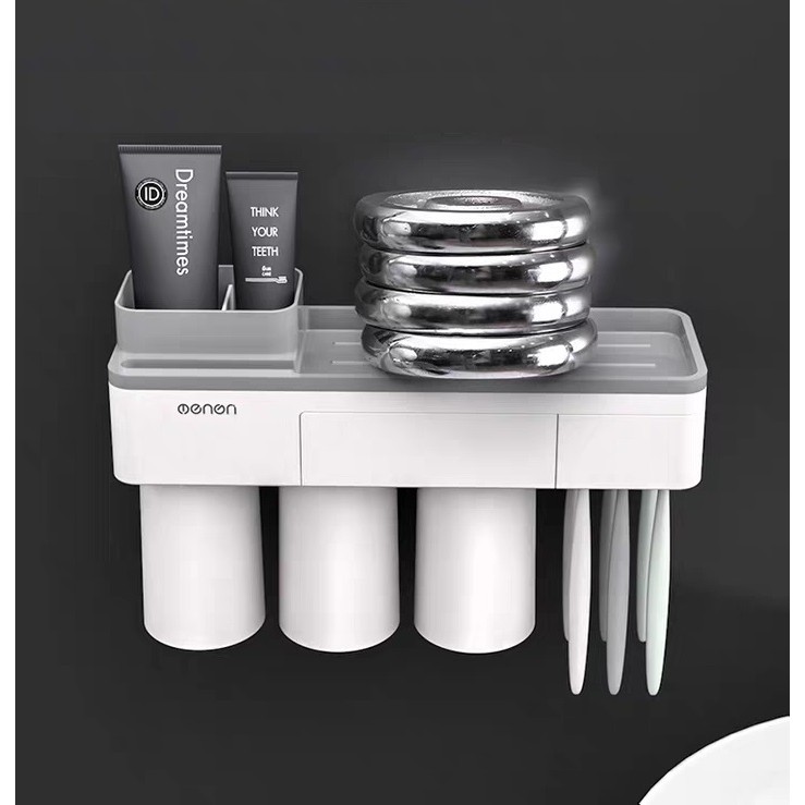 Kệ treo bàn chải đánh răng OENON kèm hộp nhả kem đánh răng tự động - Bộ 3 Cốc