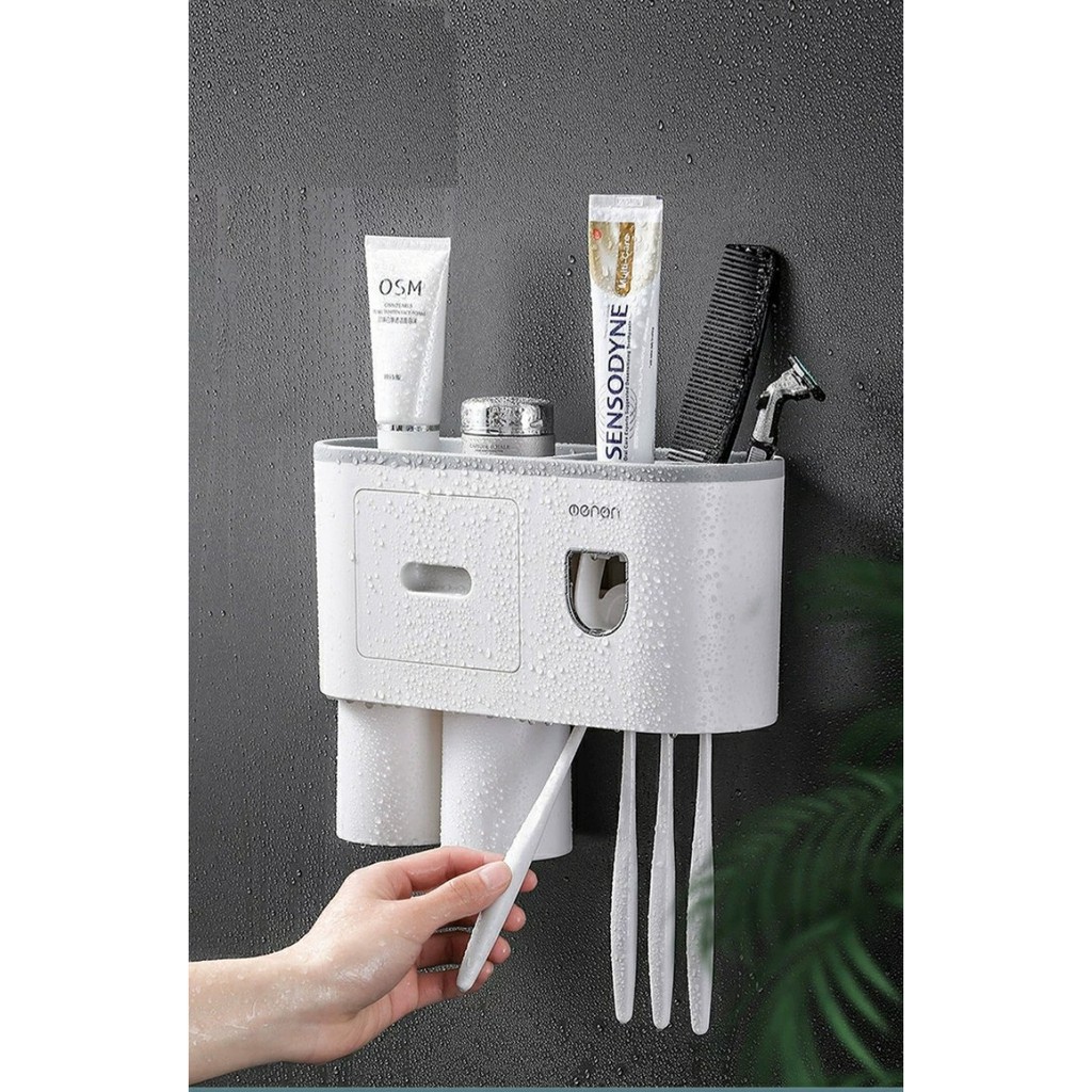 Nhà cửa & Đời sống > Đồ dùng phòng tắm > Kệ đựng bàn chải, kệ nhả kem đánh răng || Kệ Phòng Tắm Thông Minh Kèm Cốc Hút Từ Tính Có Nhả Kem Đánh Răng Tự Động Lắp Đặt Dính Tường - OEKEMCòn hàng