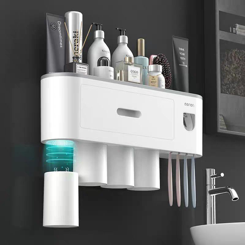 Nhà cửa & Đời sống > Đồ dùng phòng tắm > Kệ đựng bàn chải, kệ nhả kem đánh răng || Kệ Phòng Tắm Thông Minh OENON Kèm Cốc Hút Từ Tính Có Nhả Kem Đánh Răng Tự Động Lắp Đặt Dính Tường - OEKEM02Còn hàng