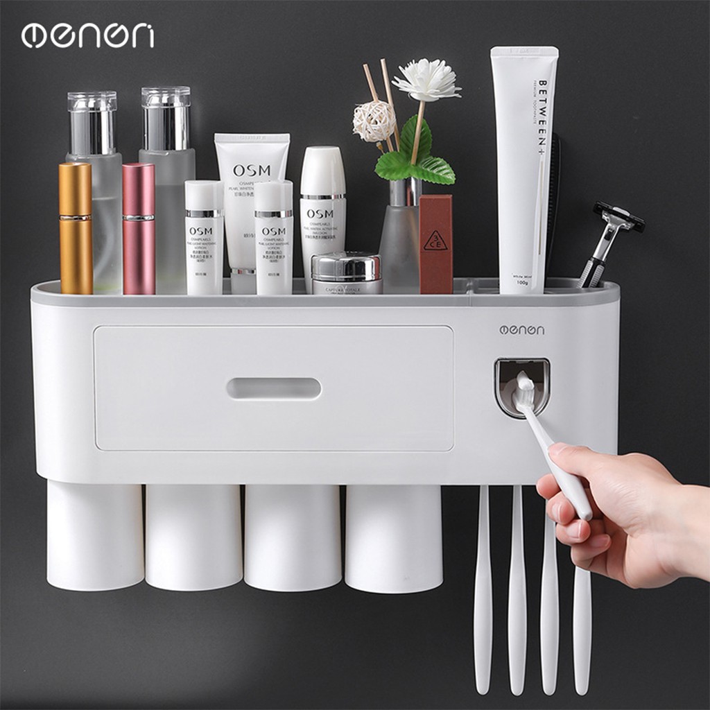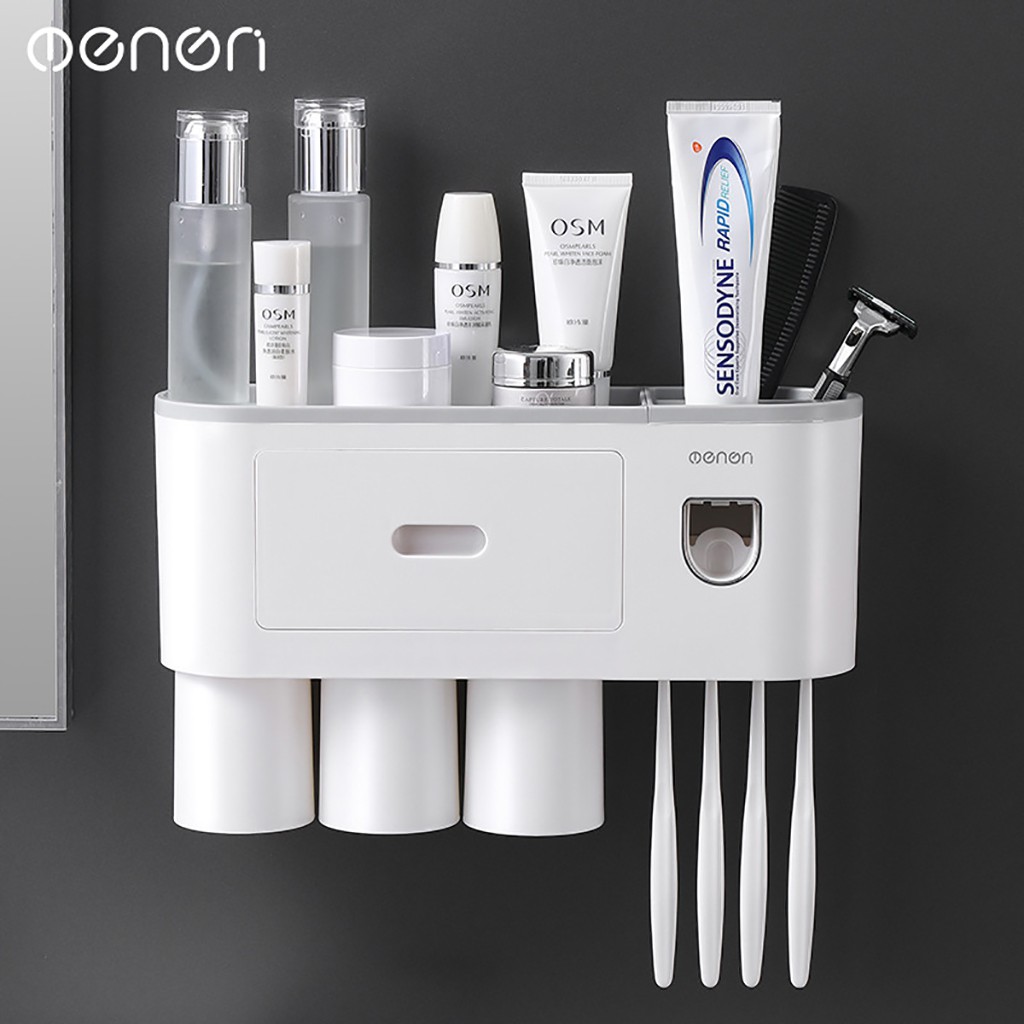 Sản phẩm chính hãng OENON, bộ nhả kem đánh răng tự động thiết kế vô cùng hiện đại với giá để đồ và ngăn kéo rộng rãi giúp để mỹ phẩm sữa tắm dầu gội,..v.v... gọn gàng ngăn lắp.