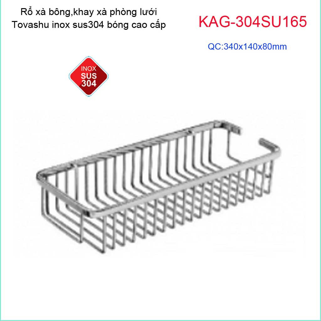 Kệ phòng tắm Tovashu KAG-304SU165, rổ đựng chai xà bông Inox dập khuôn SUS304 Nhật cao cấpKích thước dài 340mm x rộng 140mmx cao 80mm