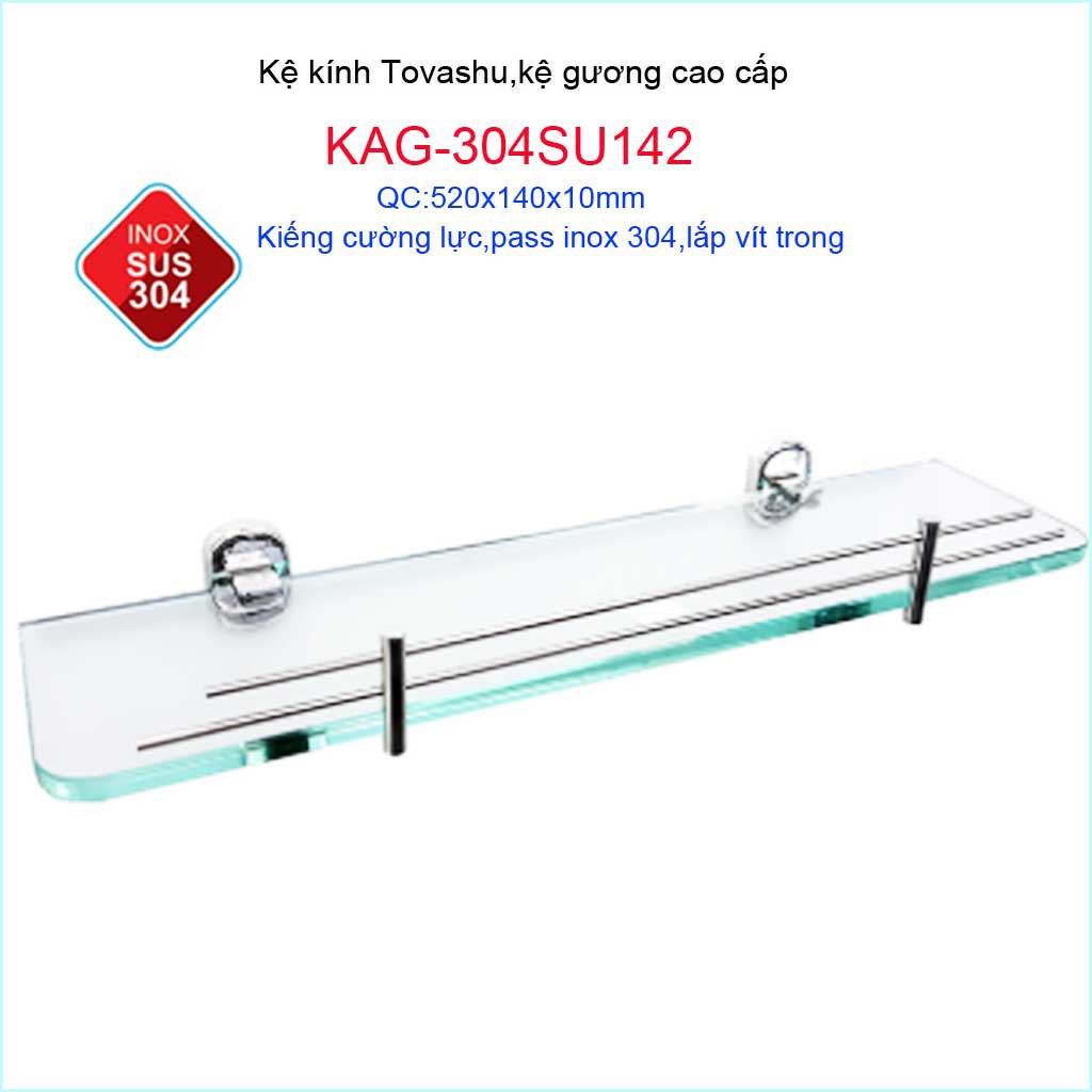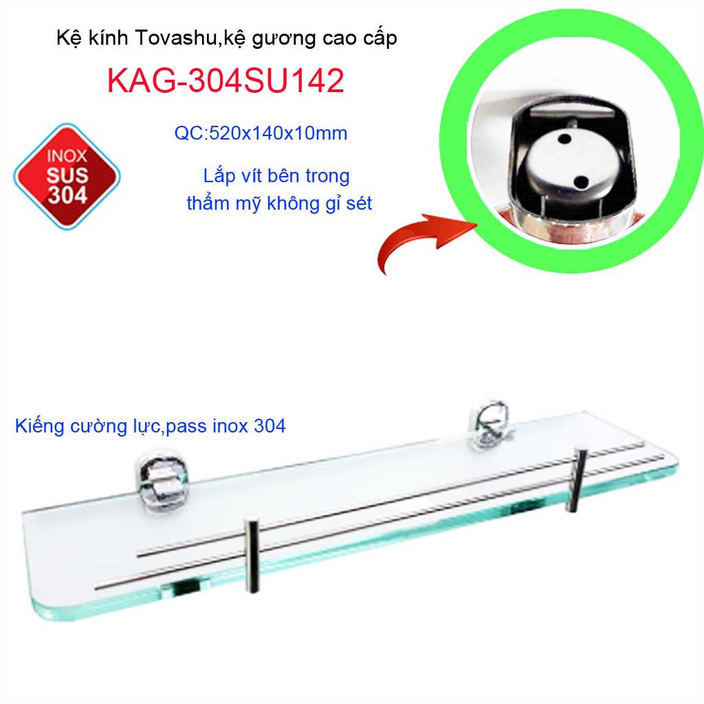 Kệ phòng Tovashu KAG-304SU142, kệ kính cường lực Inox SUS304 Nhật Bản cao cấp siêu bềnKích thước dài 520mmx cao rộng 140mm x cao 100 mm