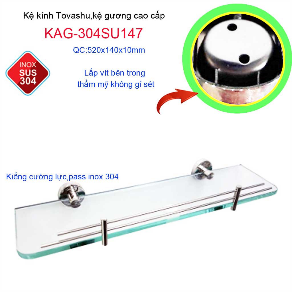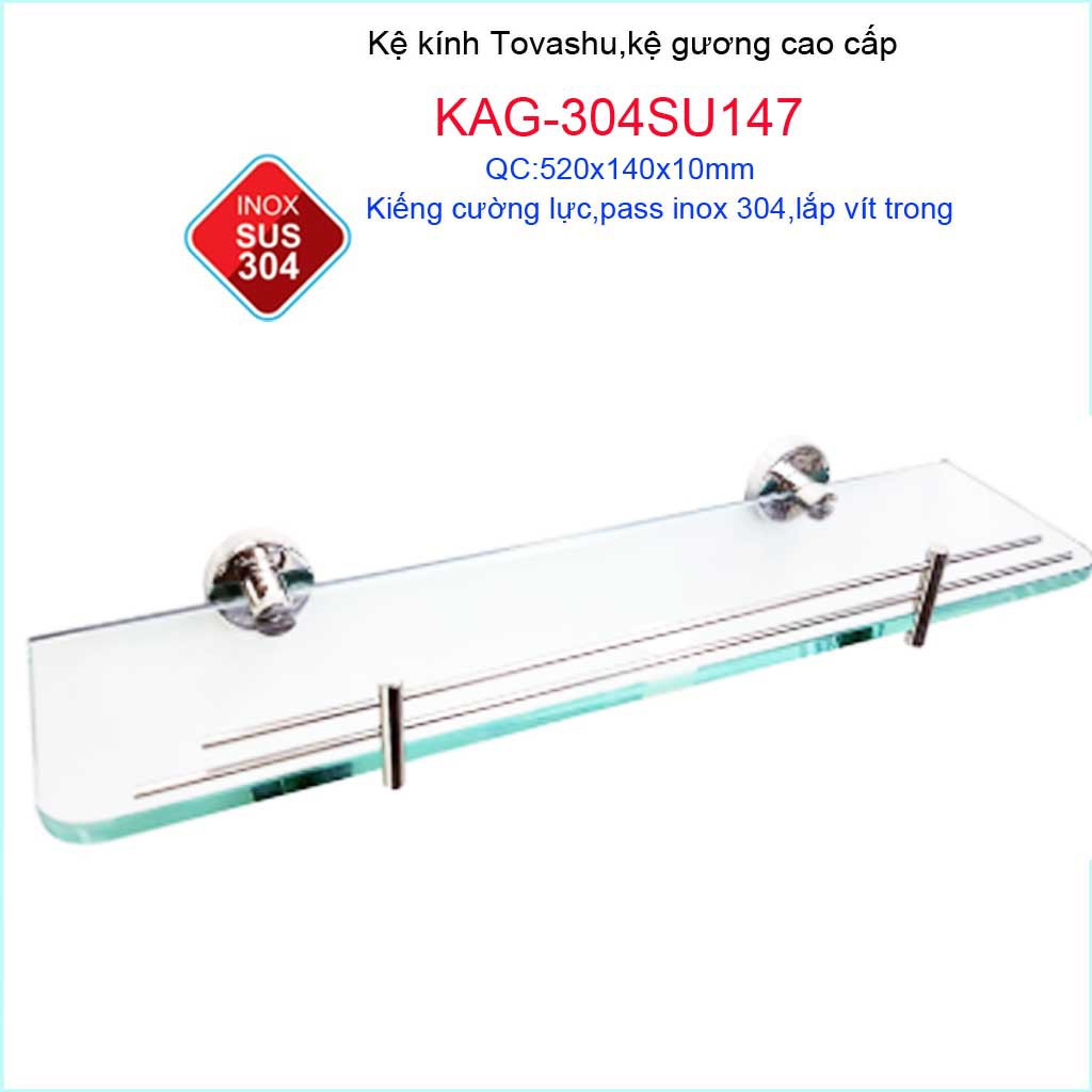 Kệ phòng Tovashu KAG-304SU147, kệ kính cường lực Inox SUS304 Nhật Bản cao cấp siêu bềnKích thước dài 520mmx cao rộng 140mm x cao 100 mm