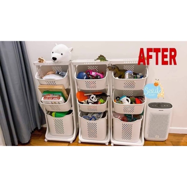 KỆ PLASTIC DI ĐỘNG 3 TẦNGVới thiết kế chắc chắn, tinh tế & có 4 bánh xoay 360 độ giúp di chuyển dễ dàng, xe để đồ giặt 2 là sản phẩm lí tưởng giúp mẹ để quần áo bẩn và các đồ dùng khác một cách sạch sẽ & lịch sự cũng như vận chuyển dễ dàng đến nơi cần giặt.