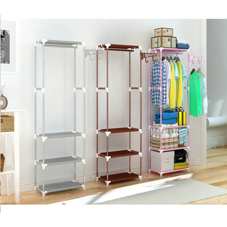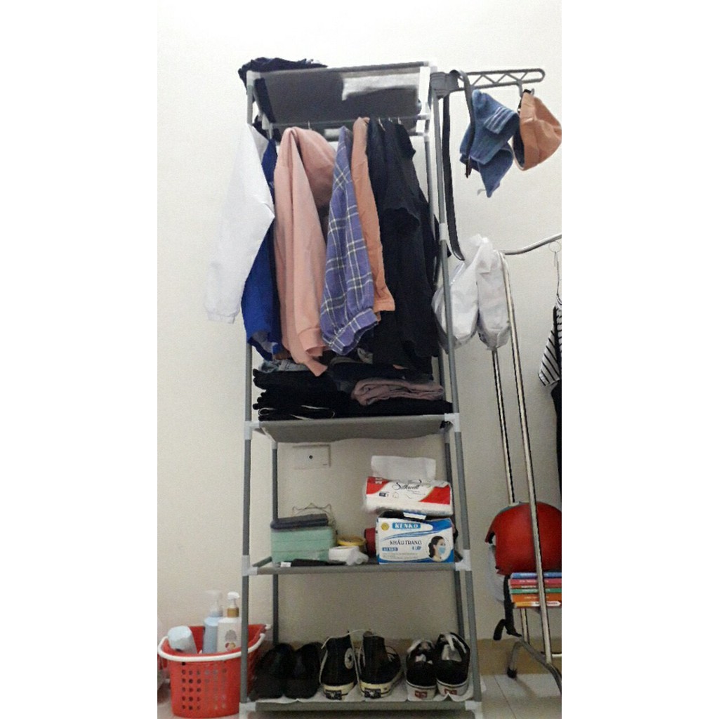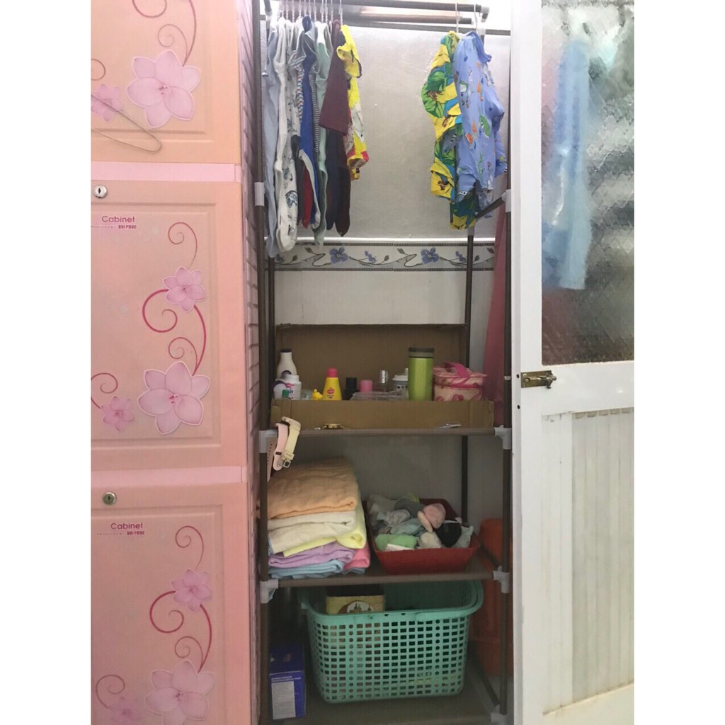 ❸ Khung sắt sơn tĩnh điện chắc chắn, cao rộng treo được nhiều đồ có thêm tầng để đựng vali du lịch, Quần Áo bò…