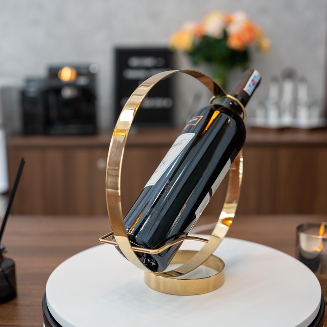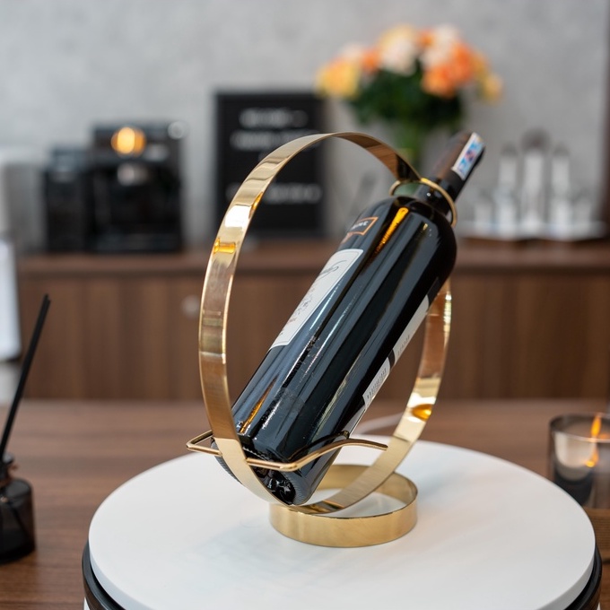 - Kệ rượu mini tôn vinh vị thế của chai rượu và mang đến 1 style rất "TÂY" cho gia chủ.- Kệ rượu mini được làm 100% INOX 304 VÀNG GOLD óng ánh mang đến 1 kiểu decor tân cổ điển rất riêng và tinh tế.