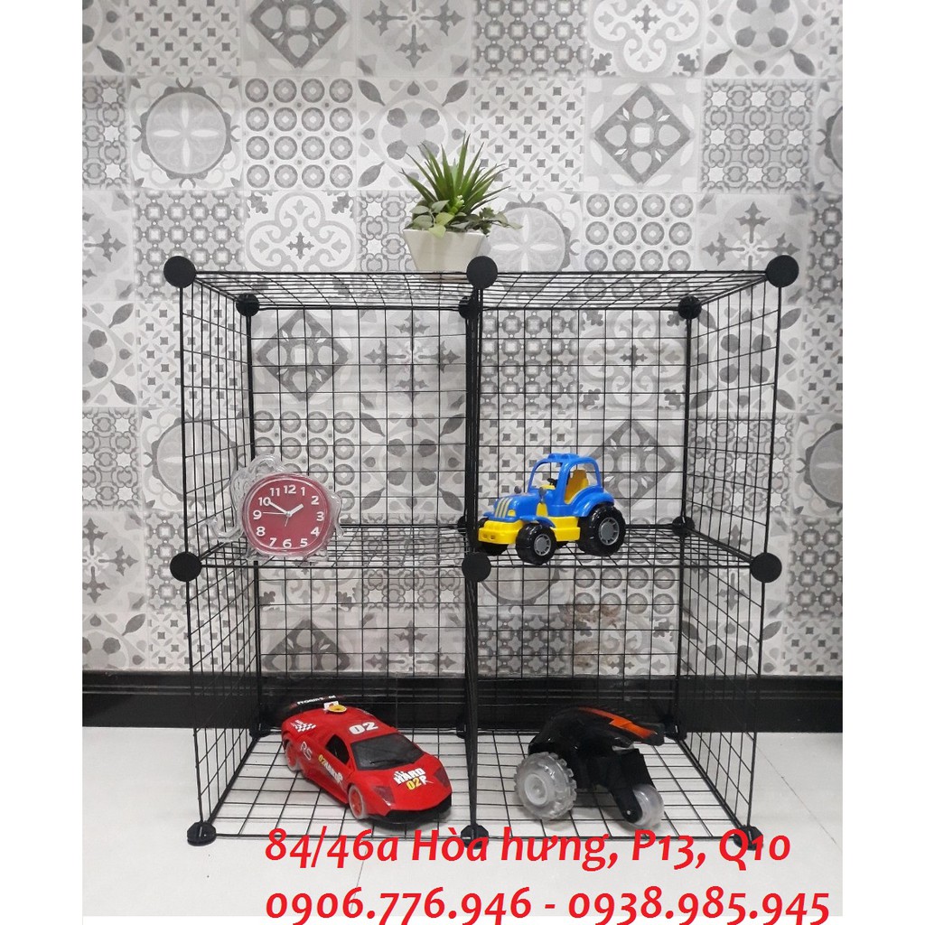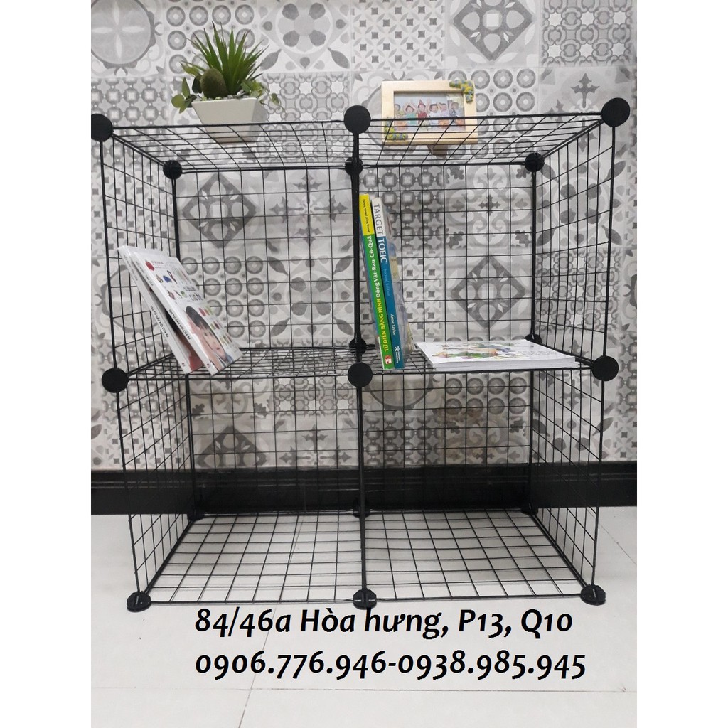 KỆ SÁCH 2 TẦNG 4 Ô - LƯỚI SẮT SƠN TĨNH ĐIỆN CHỐNG GỈ SÉT - MÀU ĐEN - CHỊU NẶNG MỖI TẦNG 30KG - LẮP GHÉP ĐA NĂNG