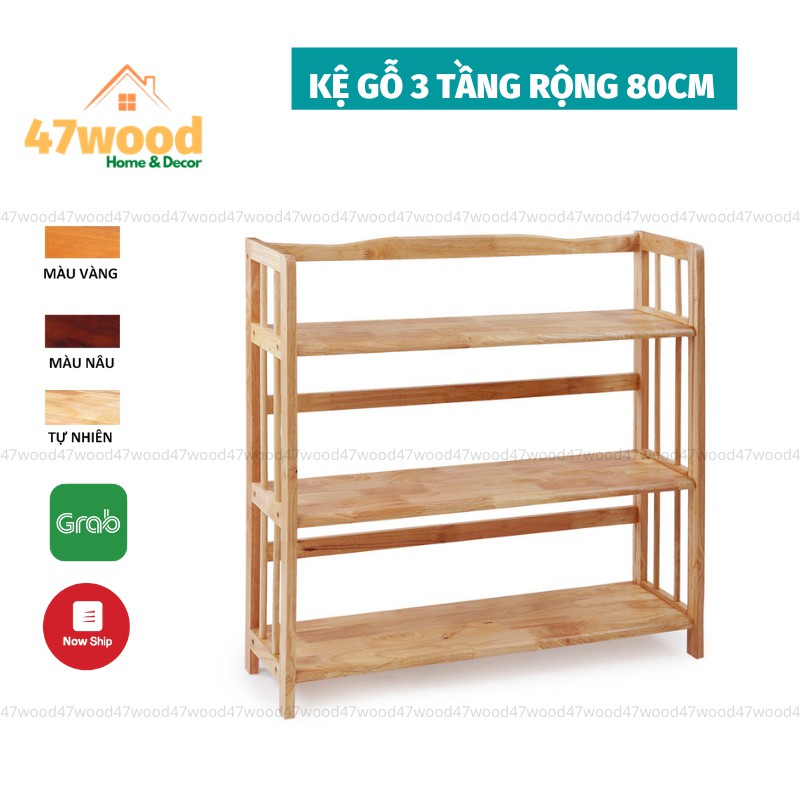 Kệ sách 3 tầng 80cm, gỗ cao su - Kệ gỗ đa năng 3 tầng rộng 80cm