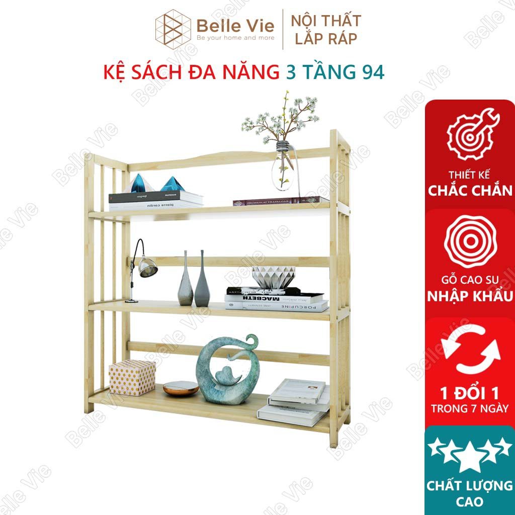 Kệ Sách 3 Tầng x 94Cm BelleVie Kệ Gỗ Tự Nhiên Decor Lắp Ráp Đơn Giản Dễ Dàng Bookshelf 3F NaturalTHÔNG SỐ KỸ THUẬT