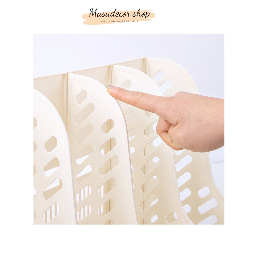 Công dụng: kệ có 4 ngăn để đựng sách ngoài còn có khay đựng bút viết. Kệ cực kì tiện lợi và decor bàn học cực xinh kết hợp với màu trắng trang trọng
