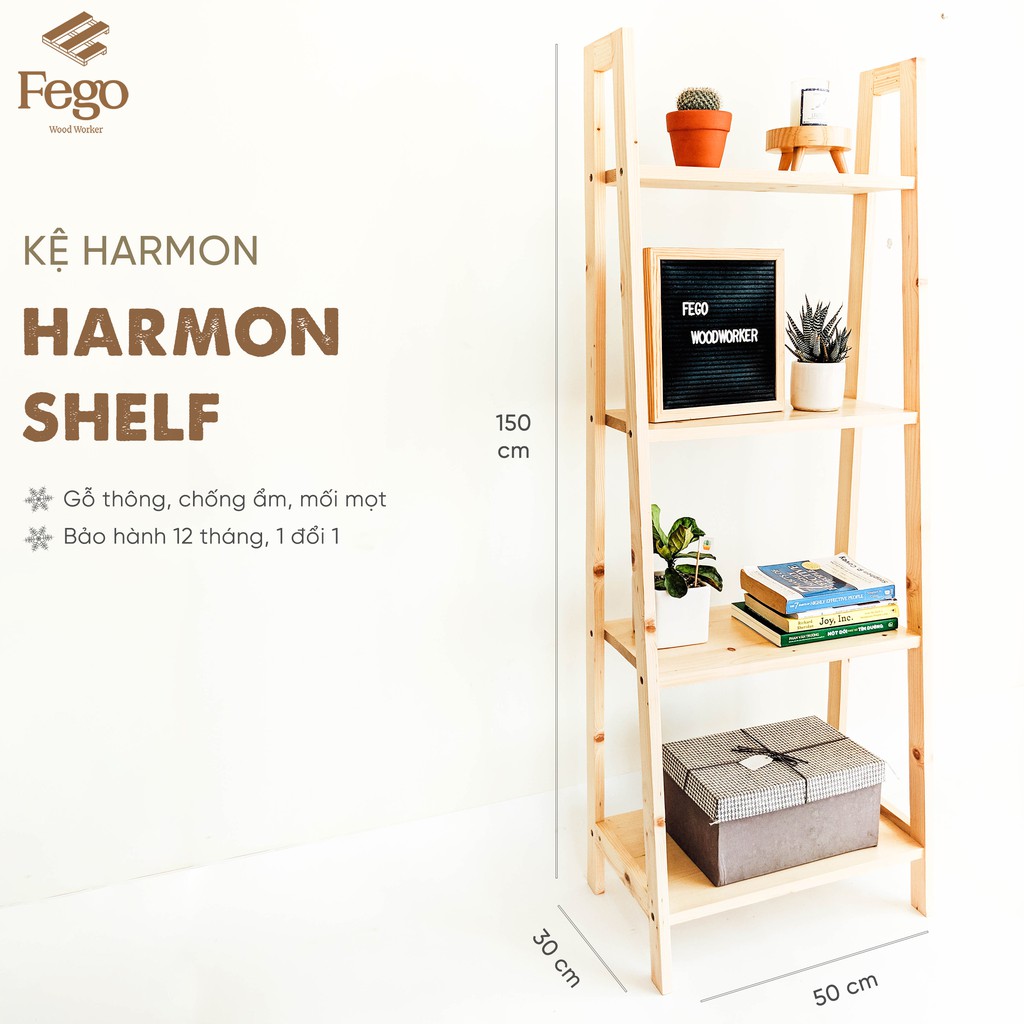 Nhà cửa & Đời sống > Nội thất > Kệ & Giá || Kệ Sách 4 Tầng Gỗ Thông Tự Nhiên FEGO Harmon Để Đồ Đa Năng Decor Phòng Khách Phòng NgủCòn hàng