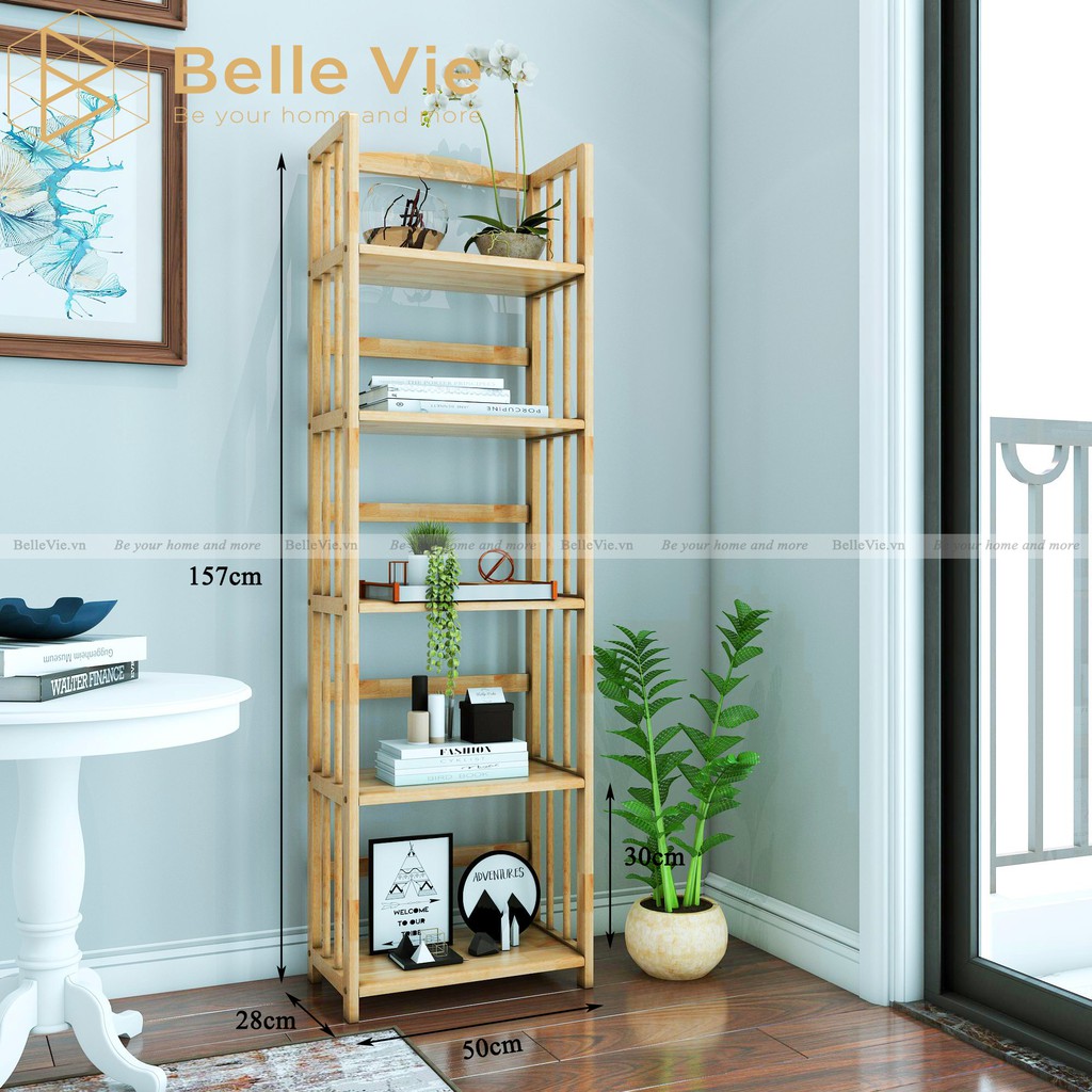 Kệ Sách 5 Tầng BELLEVIE Kệ Gỗ Decor Lắp Ráp Đơn Giản Dễ Dàng Bookshelf 5F Naturalx 50Cm