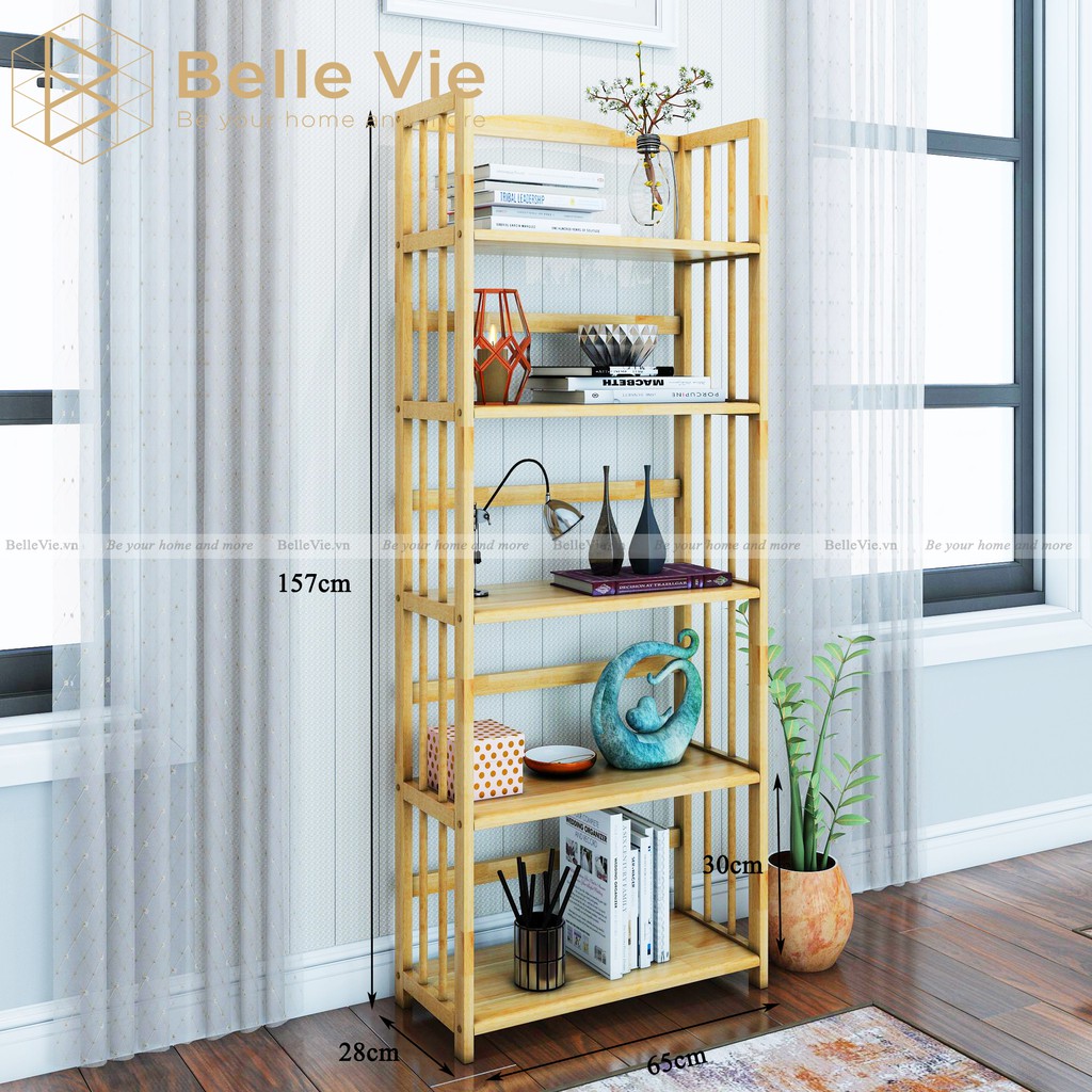 Kệ Sách 5 Tầng BelleVie Kệ Gỗ Tự Nhiên Decor Lắp Ráp Đơn Giản Dễ Dàng Bookshelf 5F NaturalBOOKSHELF 5F - 40cm , 50cm , 65cm ,80cm , 94cm