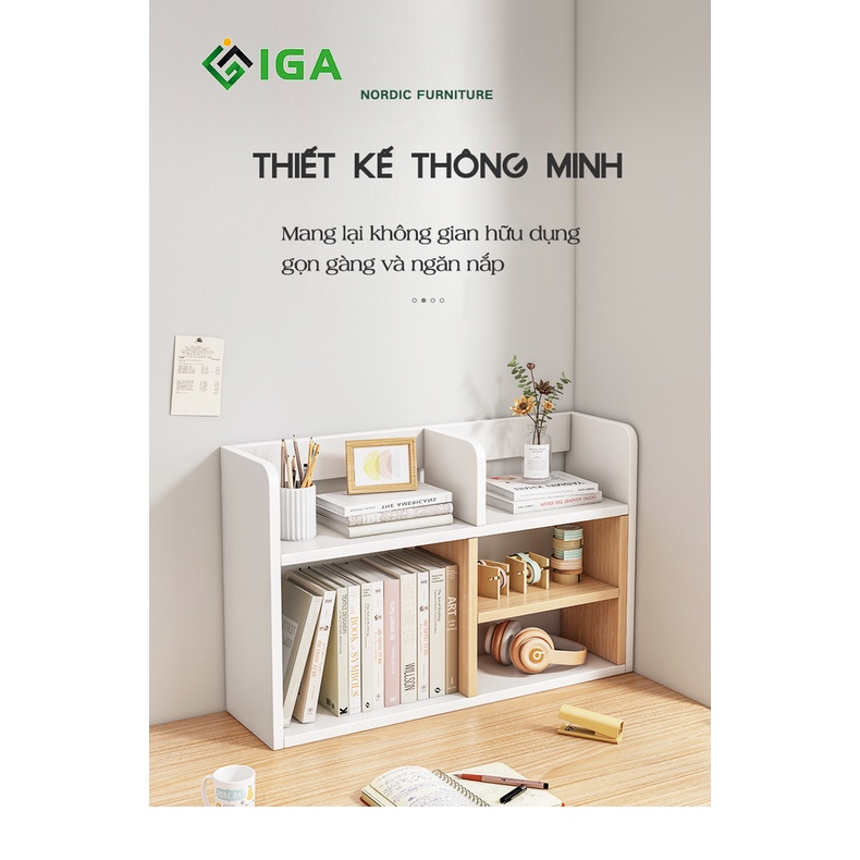 Kệ sách đa năng để bàn làm việc, kệ sách gỗ hiện đại chính hãng IGA- GP157---------------