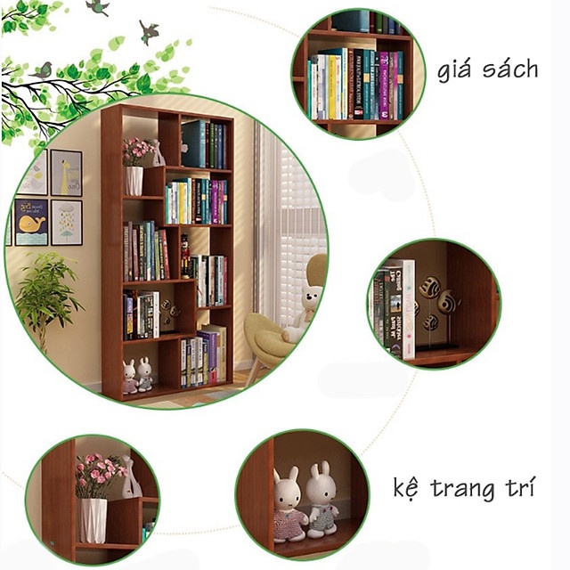 Công năng: Sử dụng làm giá sách tại phòng đọc, phòng học, phòng làm việc, văn phòng làm việc. Làm kệ để đồ, kệ trưng sản phẩm, kệ trang trí tại cửa hà