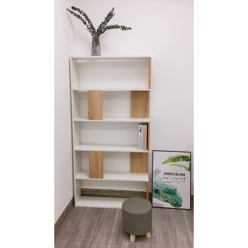 Nhà cửa & Đời sống > Nội thất > Kệ & Giá || Kệ Sách Đa Tầng Đứng Để Sàn Màu Trắng Vân Gỗ Kết Hợp - GP105Còn hàng