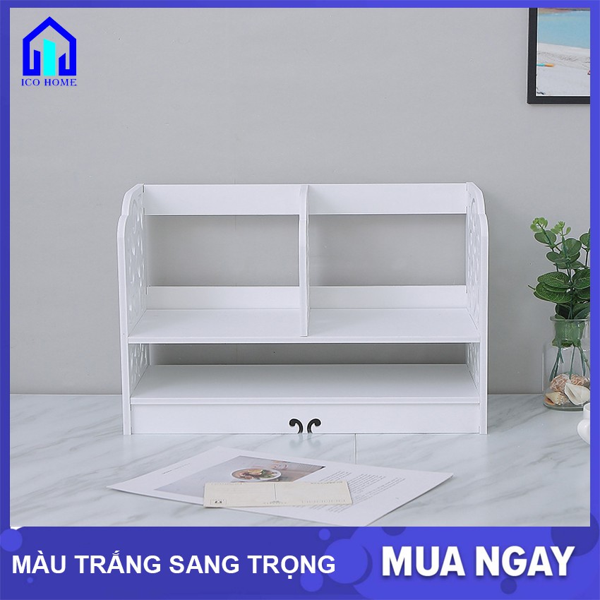 Nhà cửa & Đời sống > Nội thất > Bàn || Kệ sách để bàn bằng gỗ đẹp dễ dàng lắp ghép có nhiều ngăn, để bàn học bàn làm việc văn phòng - ICO HOMECòn hàng