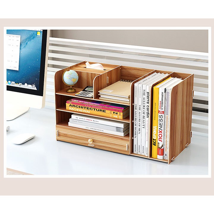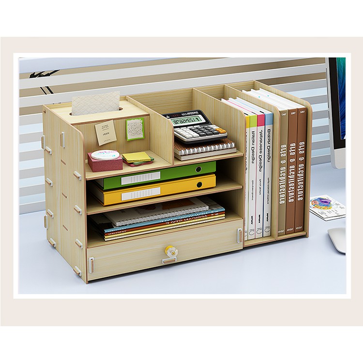 Sản phẩm Kệ đựng tài liệu để bàn chất liệu bằng gỗ công nghiệp Đài Loan cao cấp. Kệ dễ dàng lắp ghép, có nhiều ngăn, kể cả ngăn kéo, thích hợp để bàn làm việc, góc học tập.