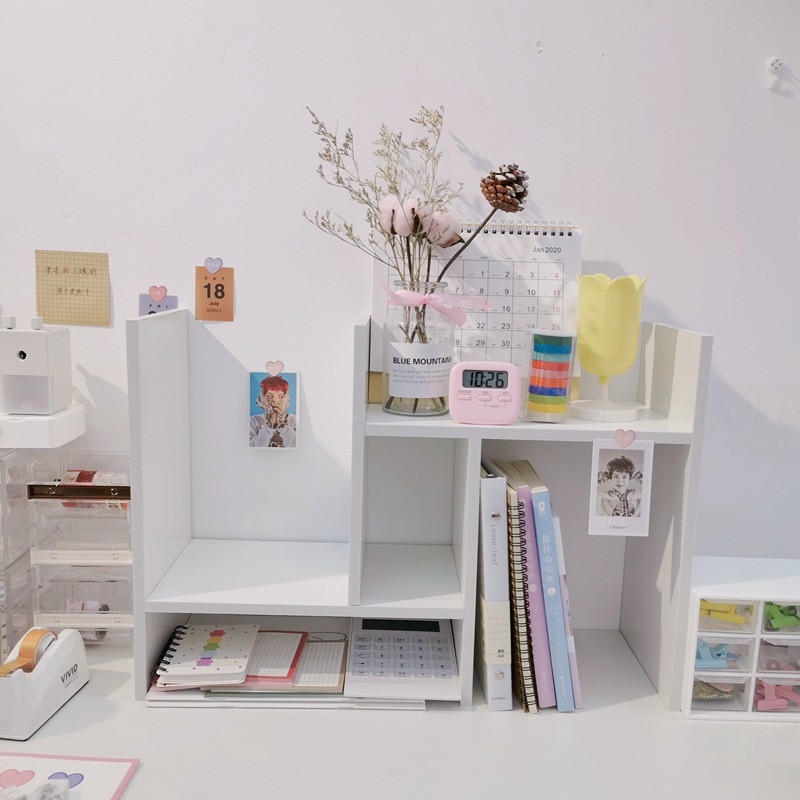Kệ sách để bàn học bàn làm việc loại mini nhỏ, bằng gỗ, tự lắp ráp thông minh, đa năng