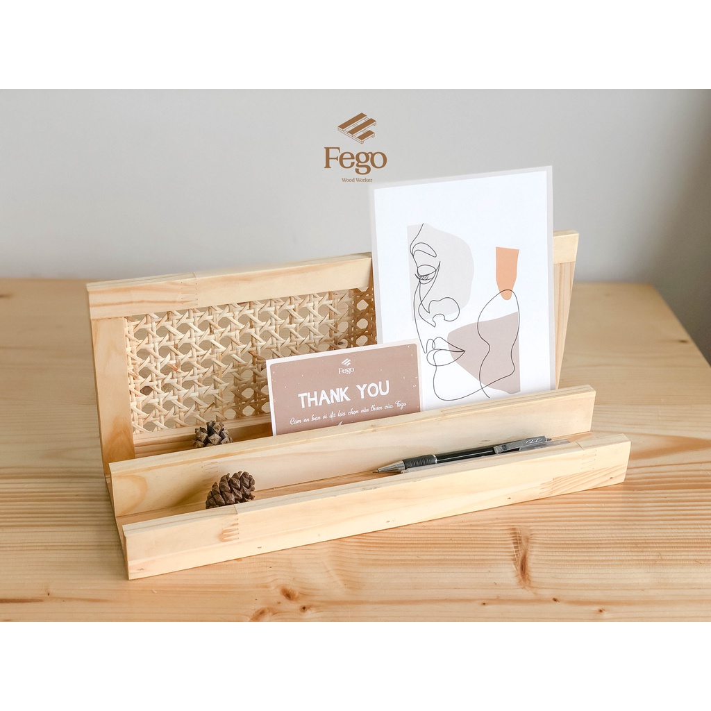 Kệ sách để bàn khung gỗ đan mây FEGO để văn phòng phẩmThông số sản phẩm:
