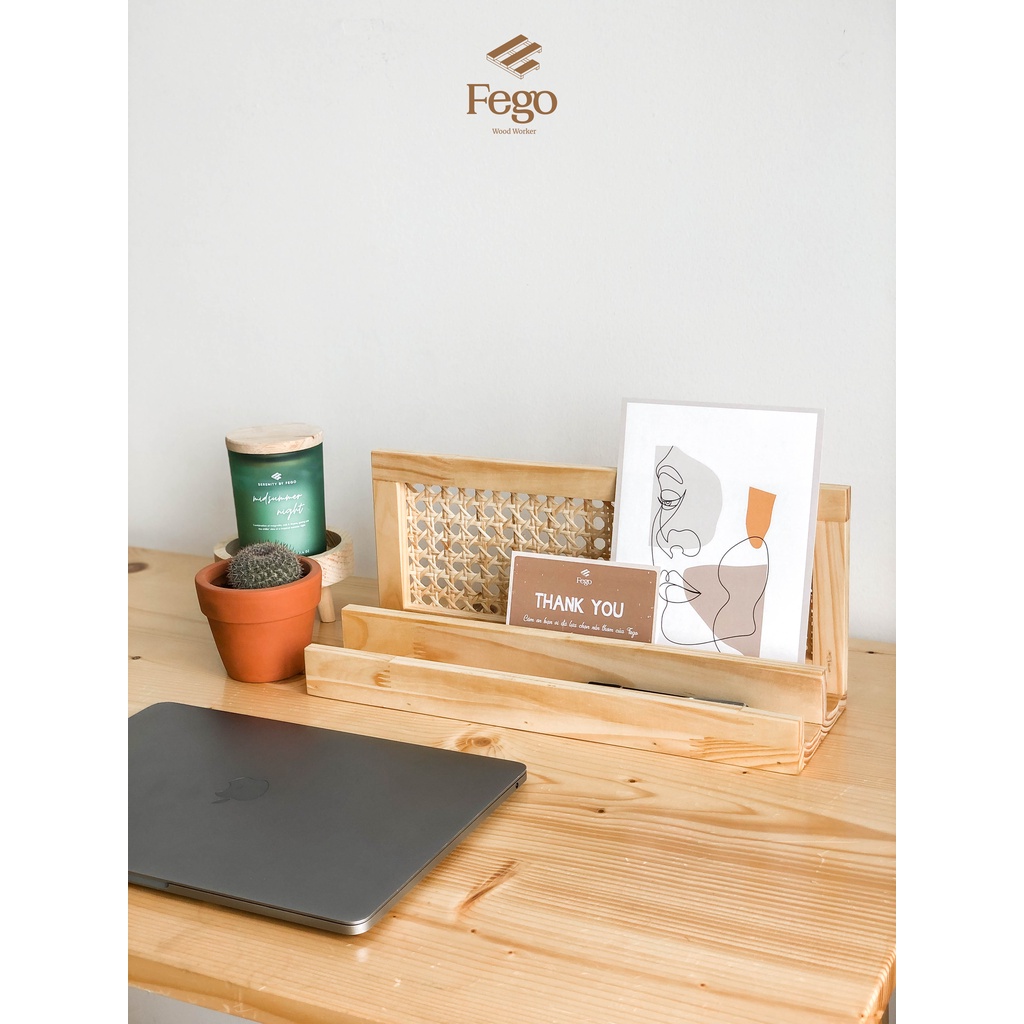 Giới thiệu Kệ sách để bàn khung gỗ đan mây FEGO để văn phòng phẩm