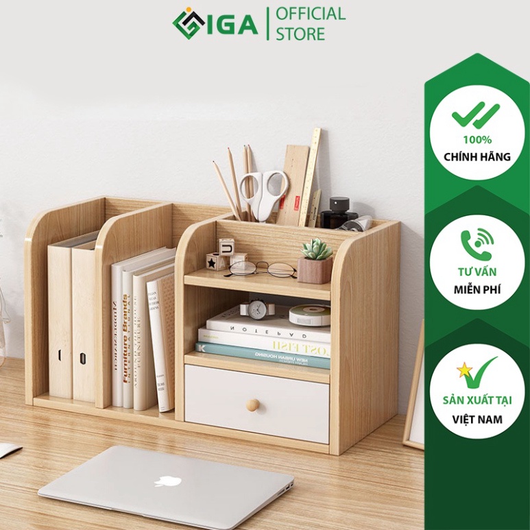 Kệ sách để bàn làm việc, bàn học kệ sách để bàn có hộc kéo - GP176