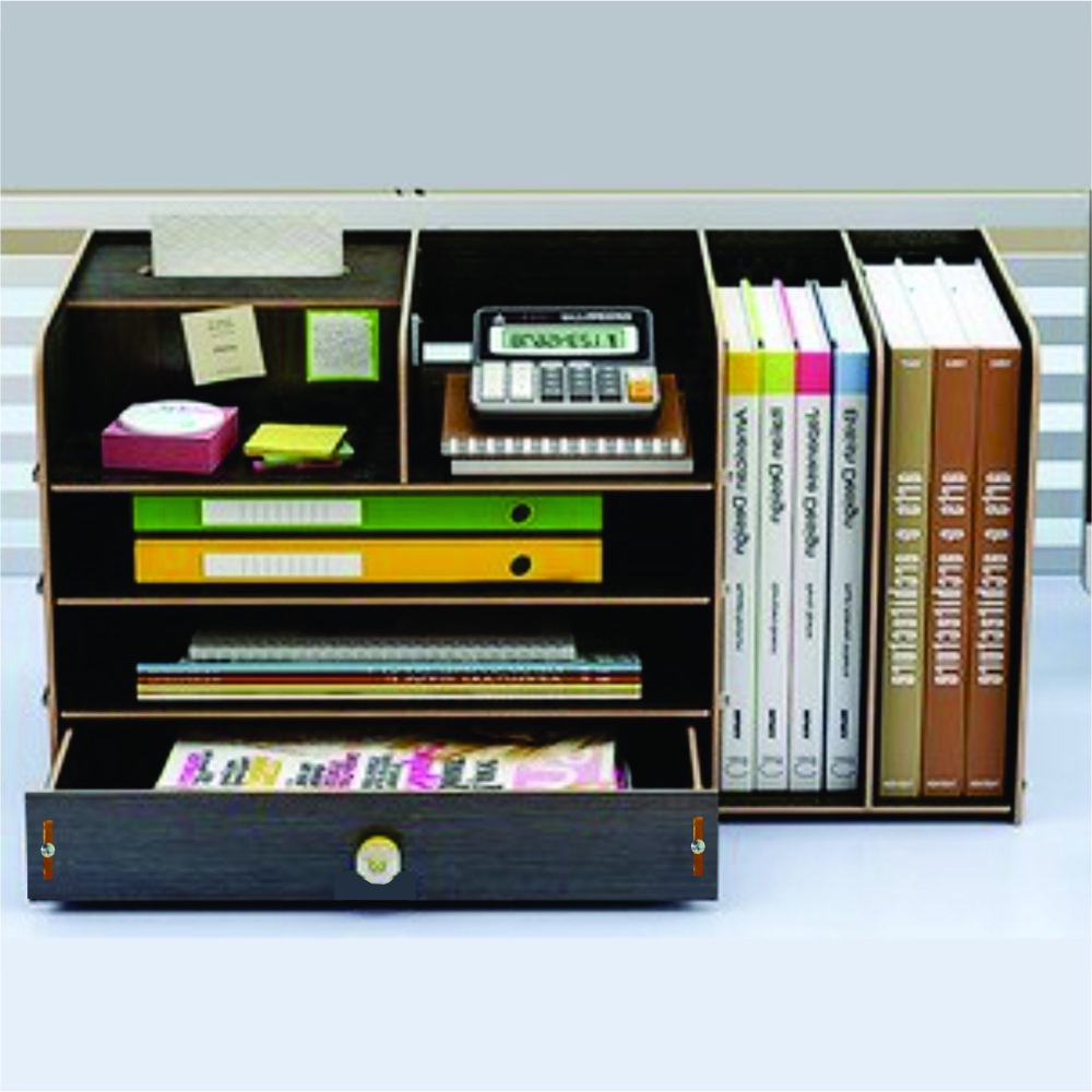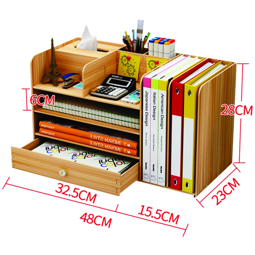 Kệ sách để bàn mini giá để tài liệu văn phòng phẩm B06 có ngăn để khăn giấy - Tặng Kèm 1 Giấy Note Hình Trái Cây