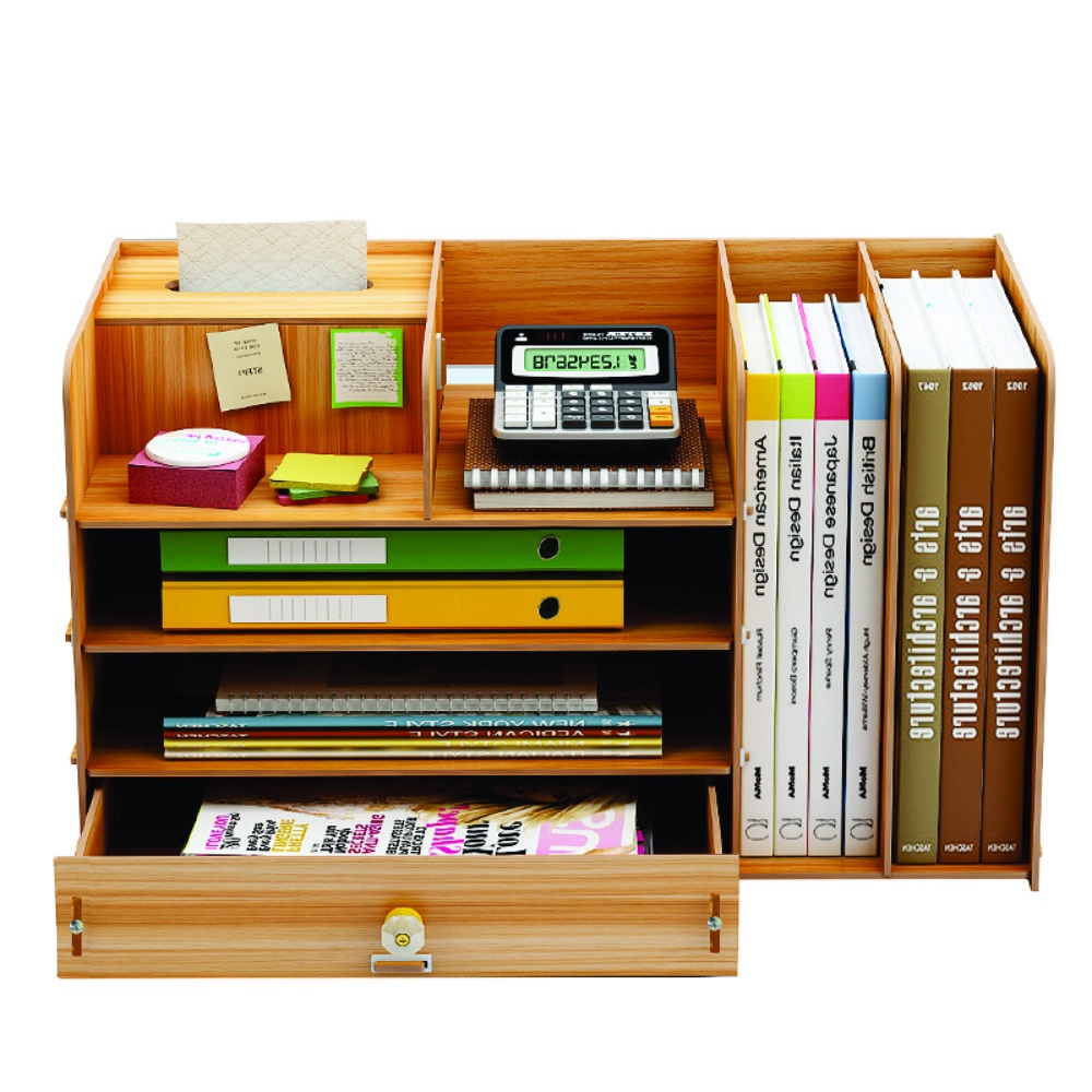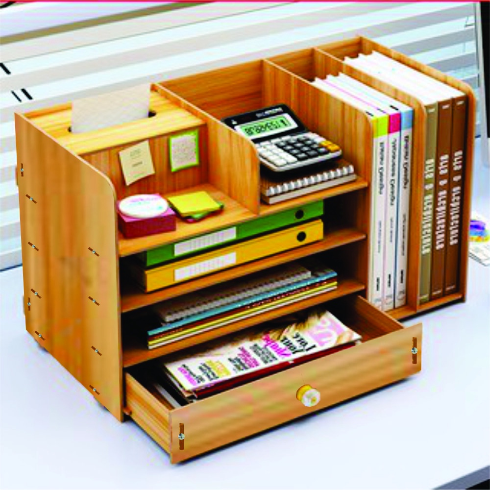 Giới thiệu Kệ sách để bàn mini giá để tài liệu văn phòng phẩm B06 có ngăn để khăn giấy - Tặng Kèm 1 Giấy Note Hình Trái Cây