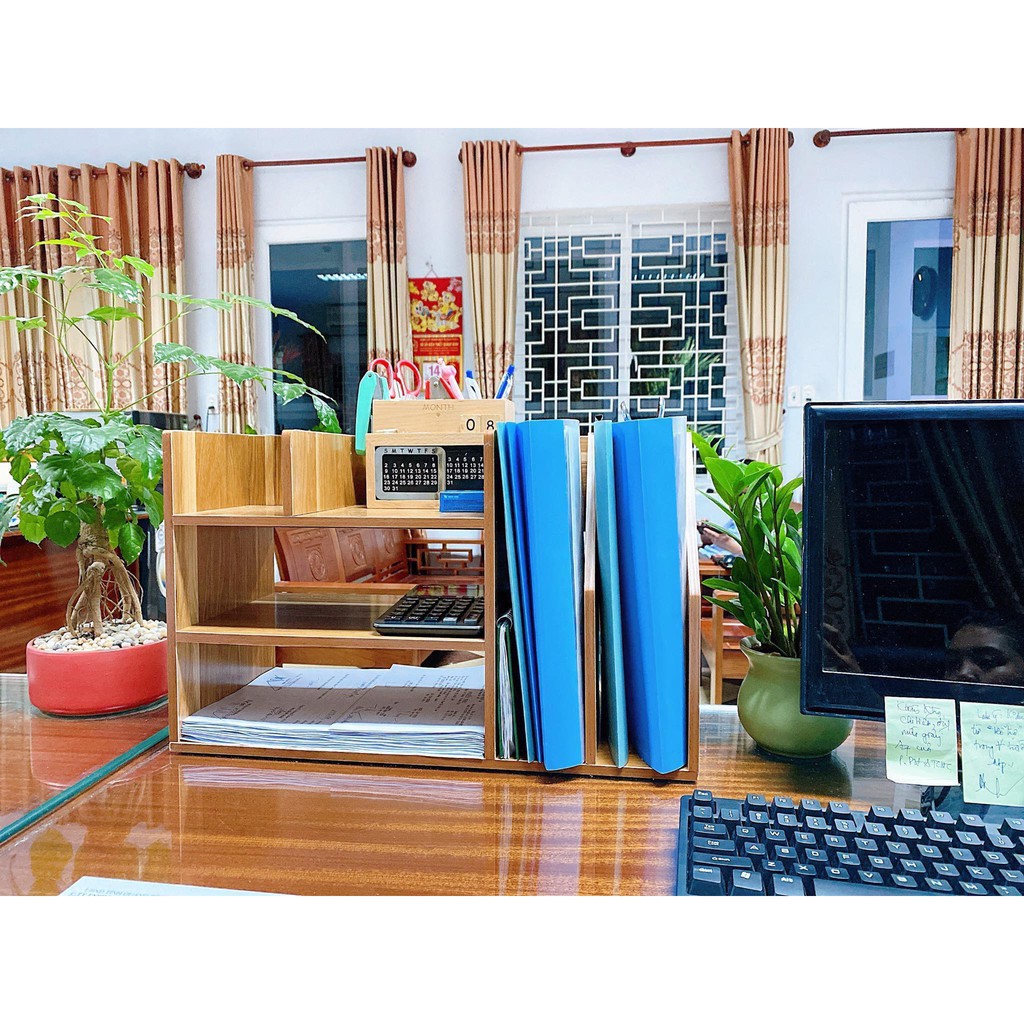 _Sản phẩm kệ gỗ để bàn, sang trọng, đẹp mắt. Dễ dàng lắp ghép khi sử dụng sẽ giúp cho bàn làm việc, phòng học của bạn gọn gàng, dễ sắp xếp hơn. Có nhiều màu sắc cho bạn lựa chọn khi sử dụng.