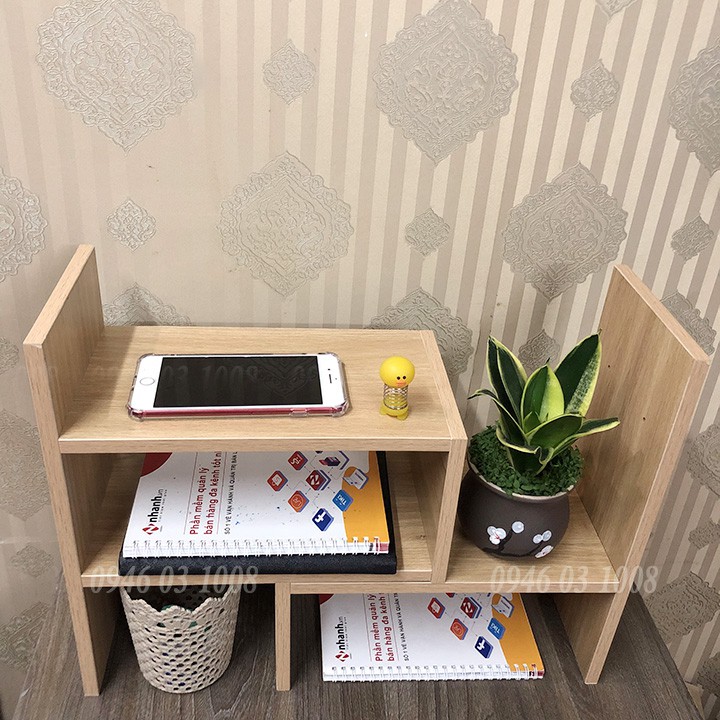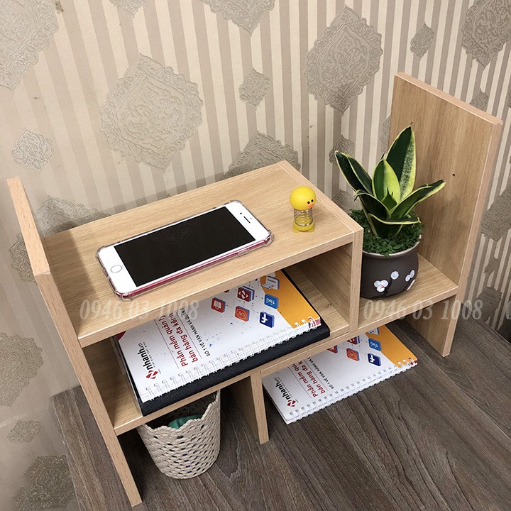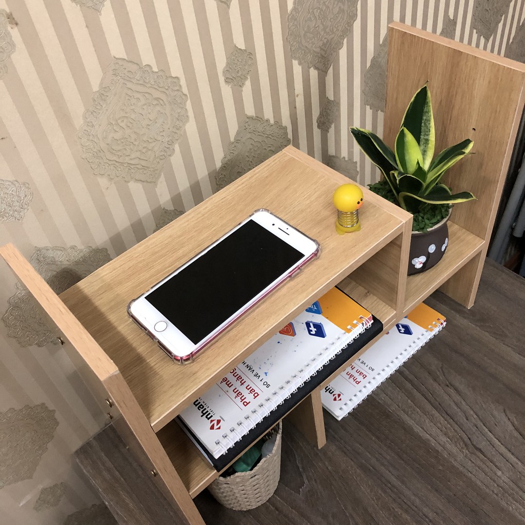 ✔️ Giá sách mini để bàn làm việc thiết kế đa năng, thỏa sức sáng tạo theo phong cách và gu thẫm mỹ của từng người. Một chiếc kệ trang trí trên bàn làm việc nhỏ nhắn nhưng vô cùng hữu dụng. Một lọ hoa, một chậu bonsai bé bé, xinh xinh được đặt trên kệ, ngay bàn làm việc sẽ đem lại sự hưng phấn và sáng tạo hơn cho công việc cũng như trong học tập.