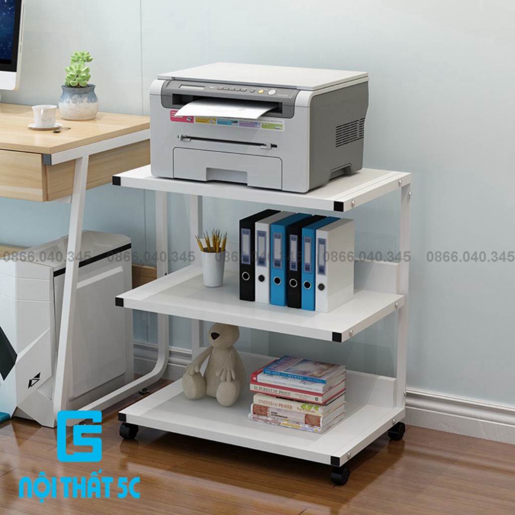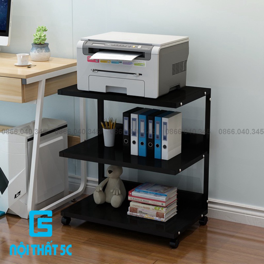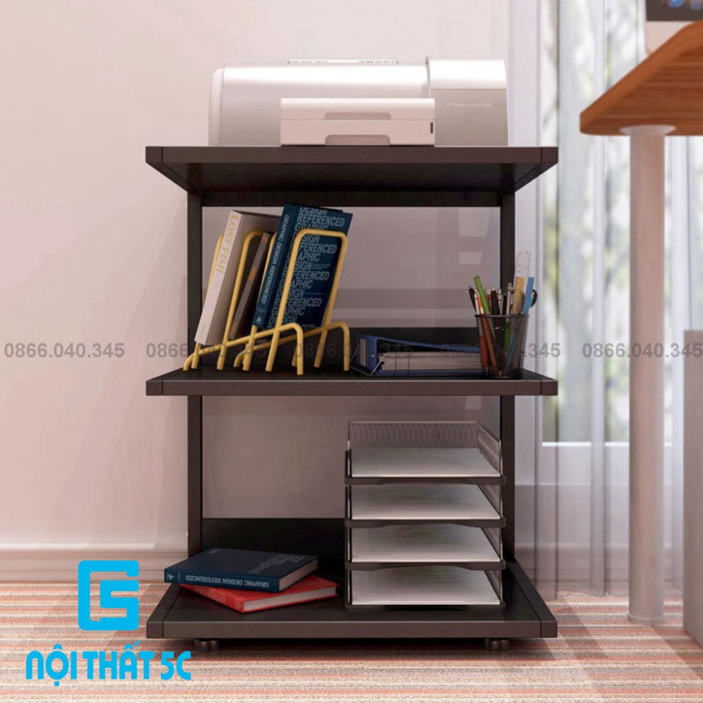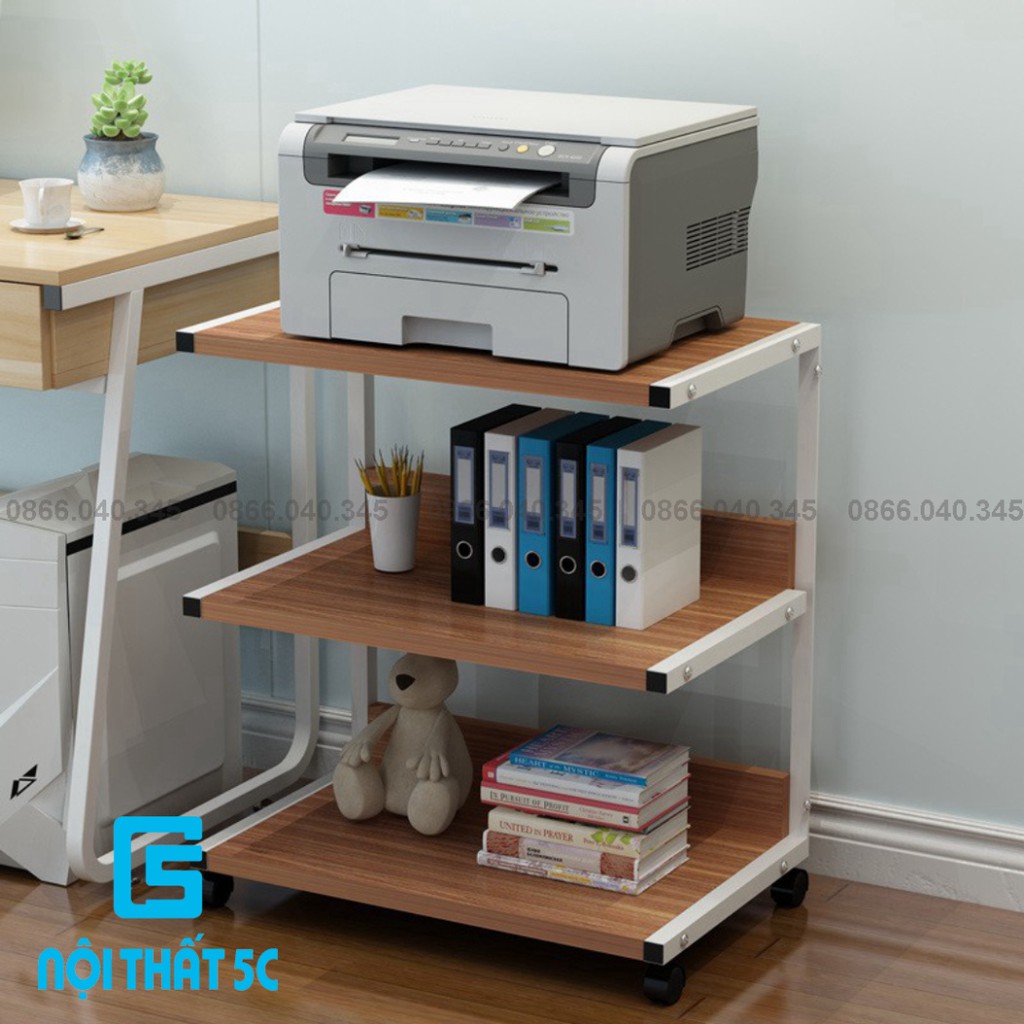 Giới thiệu Kệ Sách Di Động Kệ Để Máy In Khung Thép Sơn Tĩnh Điện Mặt Gỗ Có Bánh Xe Di Chuyển Cố Định Bằng Chốt Lắp Ráp Dễ Dàng