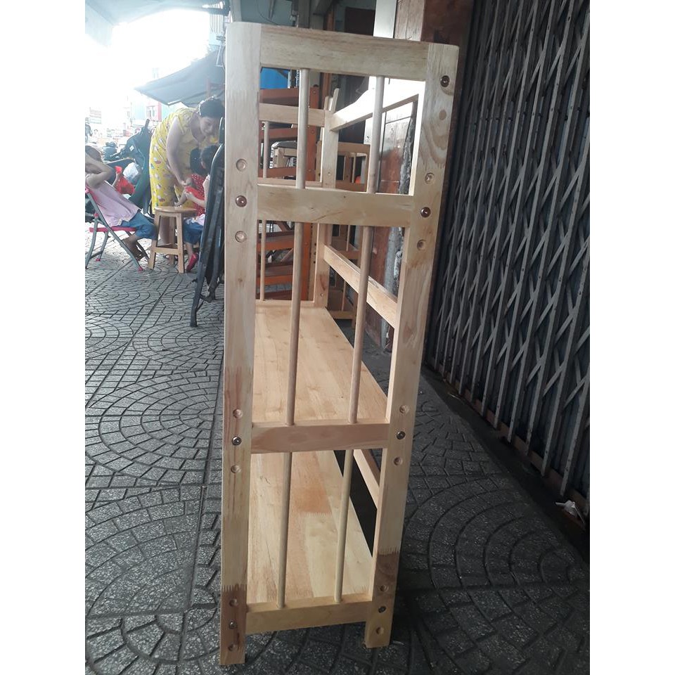 Kệ sách 3 tầng ngang 90cm, cao 92cm, sâu 28cm được làm bằng gỗ cao su, được xử lý chống mối mọt, chống cong vênh, dễ tháo lắp. Có 1 kệ sách giúp cho tất cả các sách vở đồ đạc gọn gàng hơn. Kệ có 3 màu : màu gỗ tự nhiên, vàng và nâu. Kệ có từ 3 - 4 -5 tầng . Ngang từ 40 -50 -60 -80 - 90 - 100cm. Tùy theo nhu cầu và không gian nhà, Quý khách chọn số tầng và chiều ngang cho phù hợp. (3 - 4 - 5) x (40 - 50 - 60 - 80 - 90 - 100).Bên hông kệ có 3 lỗ để Quý khách có thể tăng đưa mỗi tầng lên xuống được nha. Khi đặt hàng Quý khách hãy ghi trong phần ghi chú là màu mình muốn đặt luôn dùm nhé!