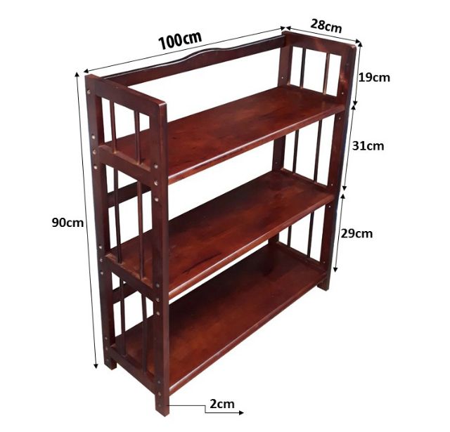 KỆ SÁCH GỖ 3 TẦNG RỘNG 100CMKệ làm 100% gỗ cao su sấy, gia công chống vênh và mối mọt.