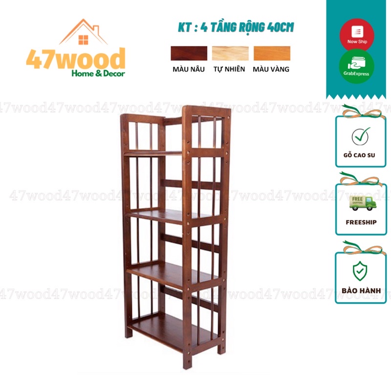 Kệ sách gỗ 4 tầng 40cm, gỗ cao su - Kệ gỗ đa năng 4 tầng rộng 40cm cao 120cm