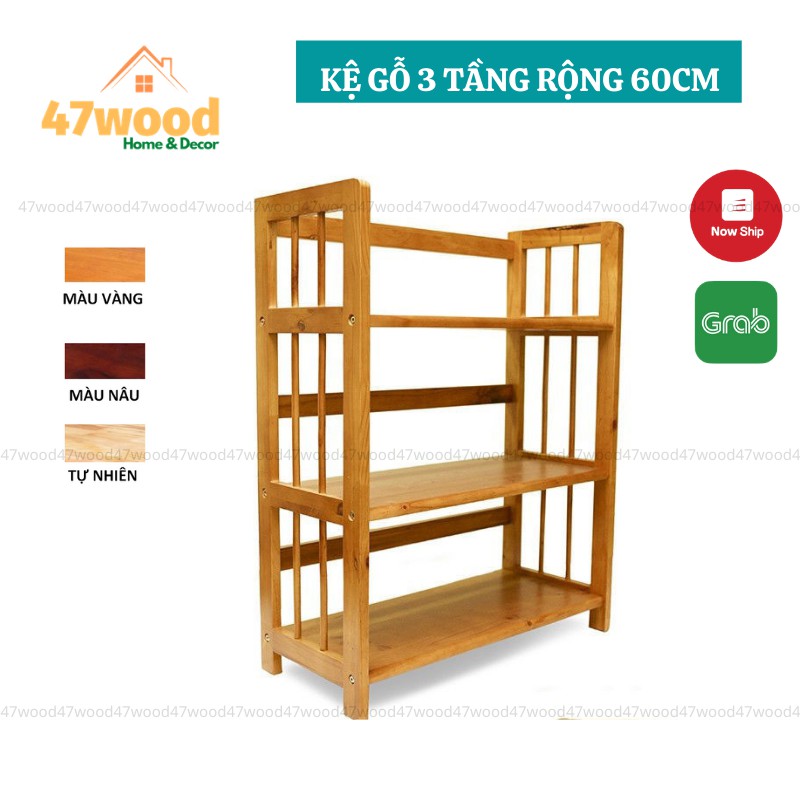 Nhà cửa & Đời sống > Nội thất > Kệ & Giá || Kệ sách gỗ cao su kích thước 3 tầng rộng 60cm - kệ gỗ đa năng 47woodCòn hàng