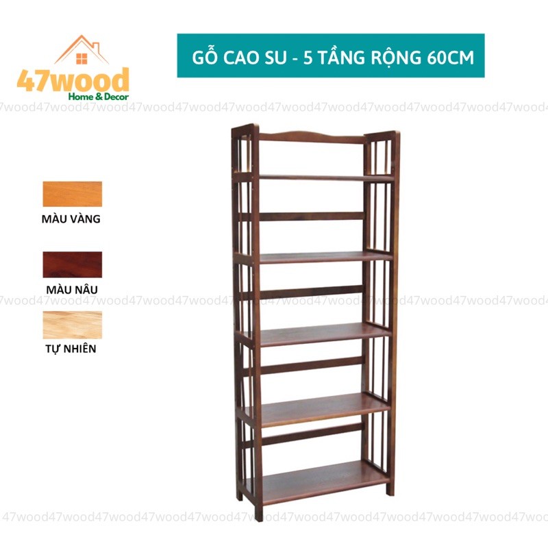 Nhà cửa & Đời sống > Nội thất > Kệ & Giá || Kệ sách gỗ đa năng 5 tầng rộng 60cm, gỗ cao su tự nhiên - Kệ gỗ 5 tầng 60cmCòn hàng