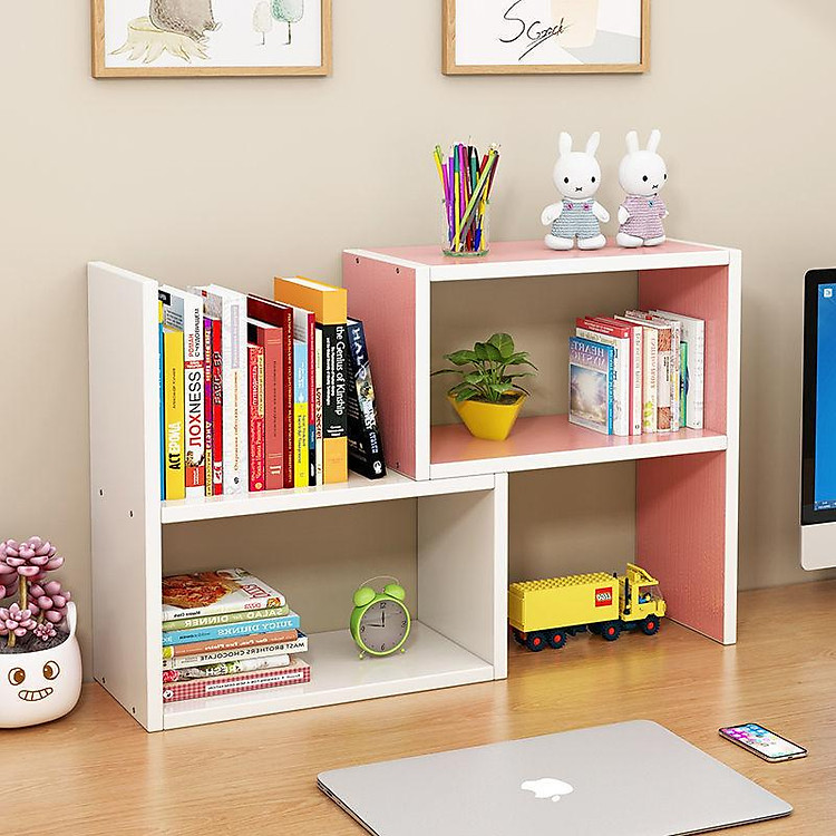 - Kệ sắp xếp sách vở, truyện, đồ decor để bàn nhỏ tối ưu bàn làm việc cho nhờ tính năng gọn nhẹ.