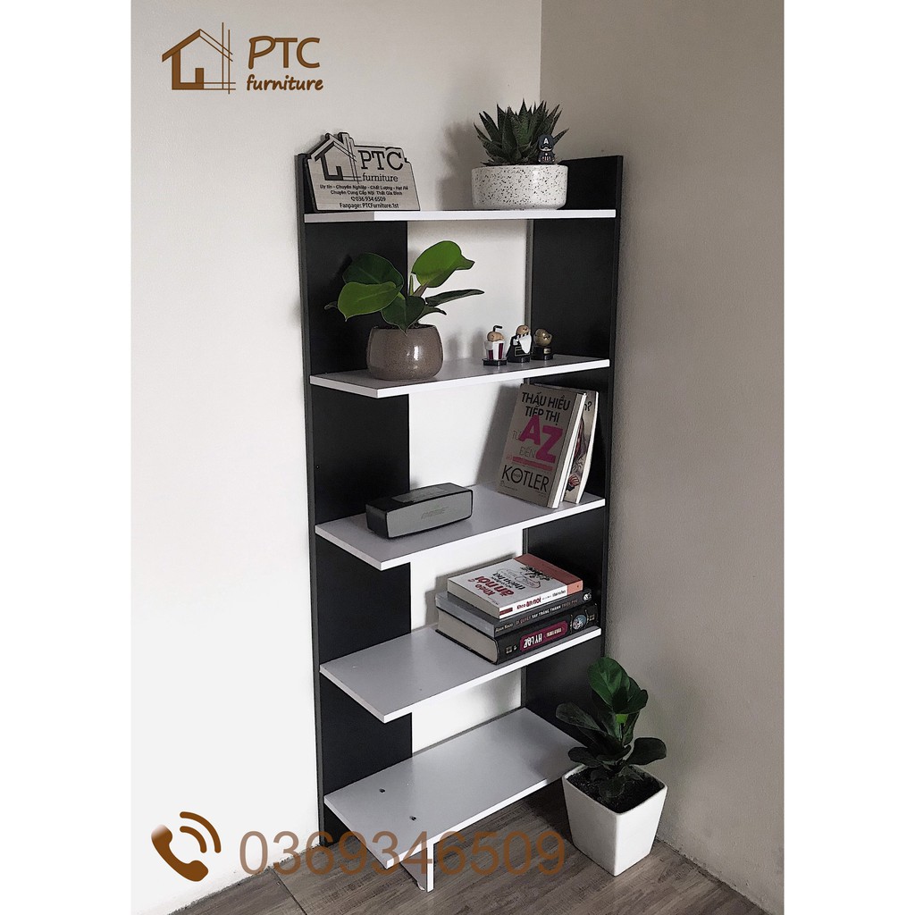 Kệ Sách Gỗ FREESHIP Kệ Góc Gỗ 5 Tầng Màu Đen Trắng