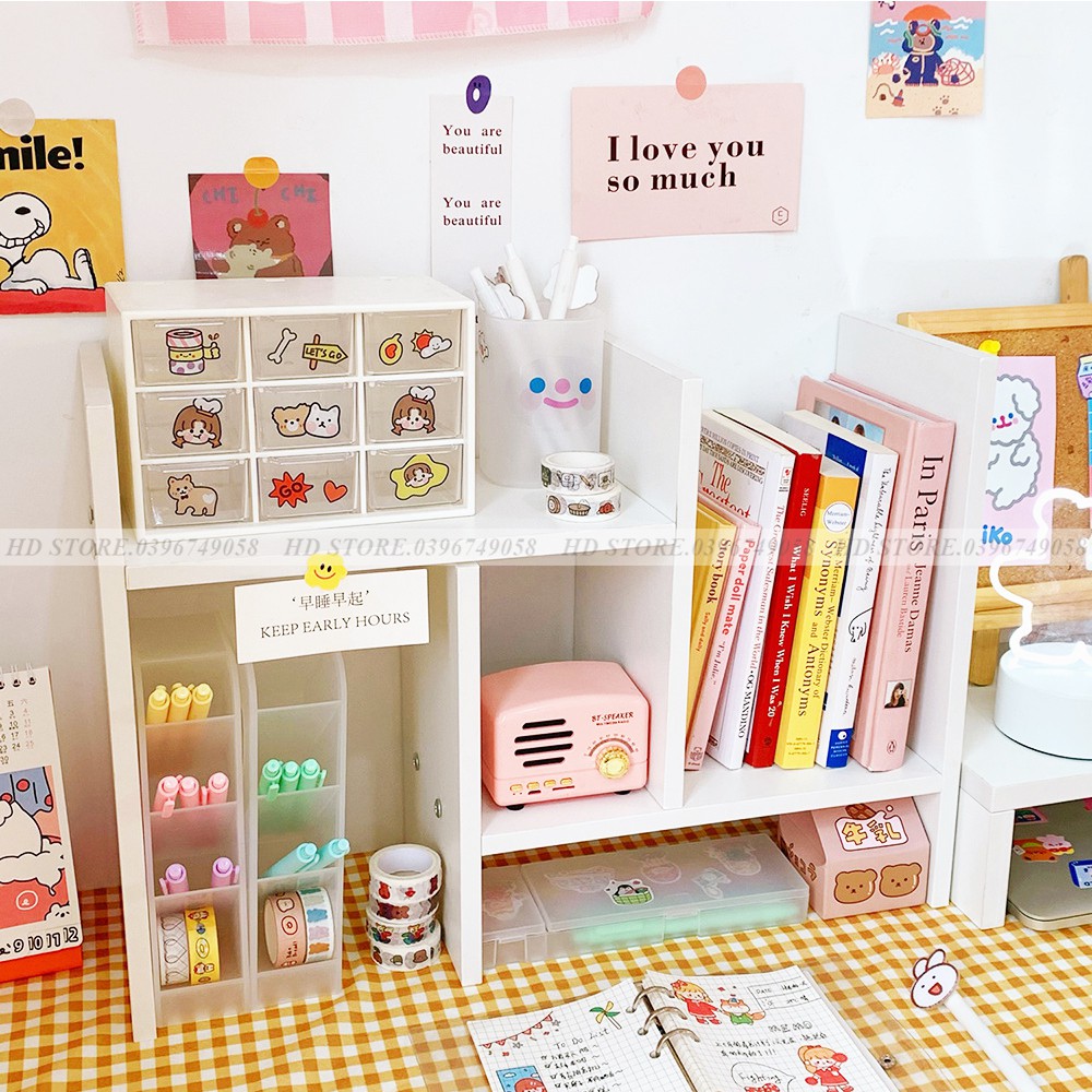 ✅✅✅ Kệ Sách Gỗ Kệ Sách Để Bàn Làm Việc Lắp Ghép Đa Năng - Màu Trắng