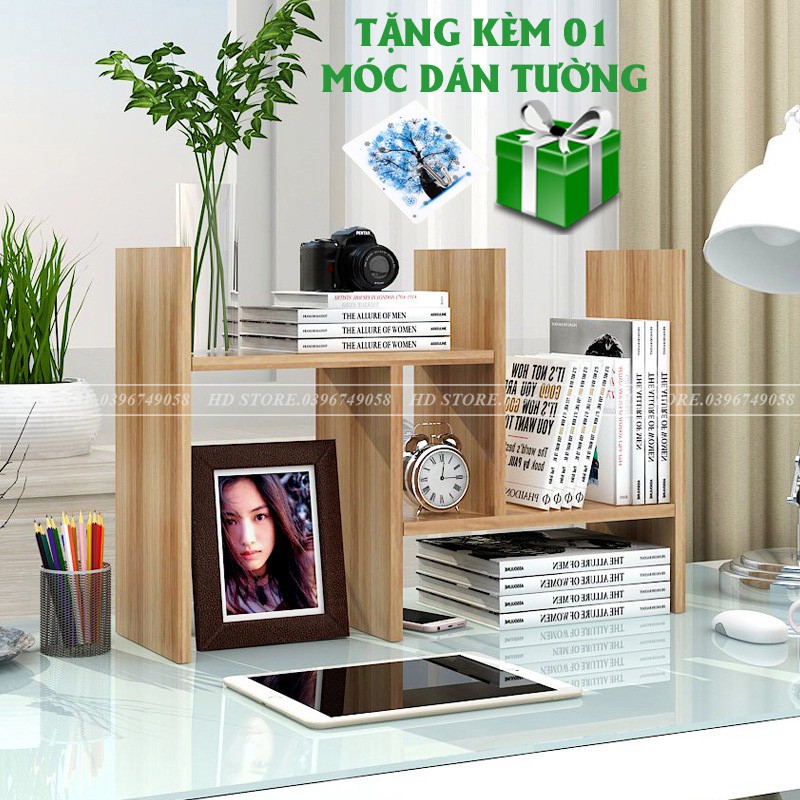 Kệ Sách Gỗ Kệ Sách Để Bàn Làm Việc Lắp Ghép Đa Năng TẶNG KÈM 01 móc dán tường 3D (hình ngẫu nhiên)