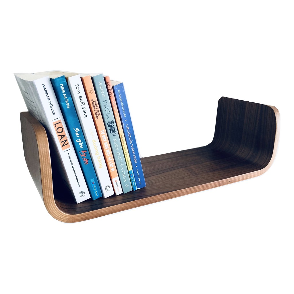 Nhà cửa & Đời sống > Nội thất > Kệ & Giá || Kệ sách gỗ treo tường uốn cong, Kệ trang trí chữ U PlyConcept Book Shelf - Plywood màu gỗ WalnutCòn hàng