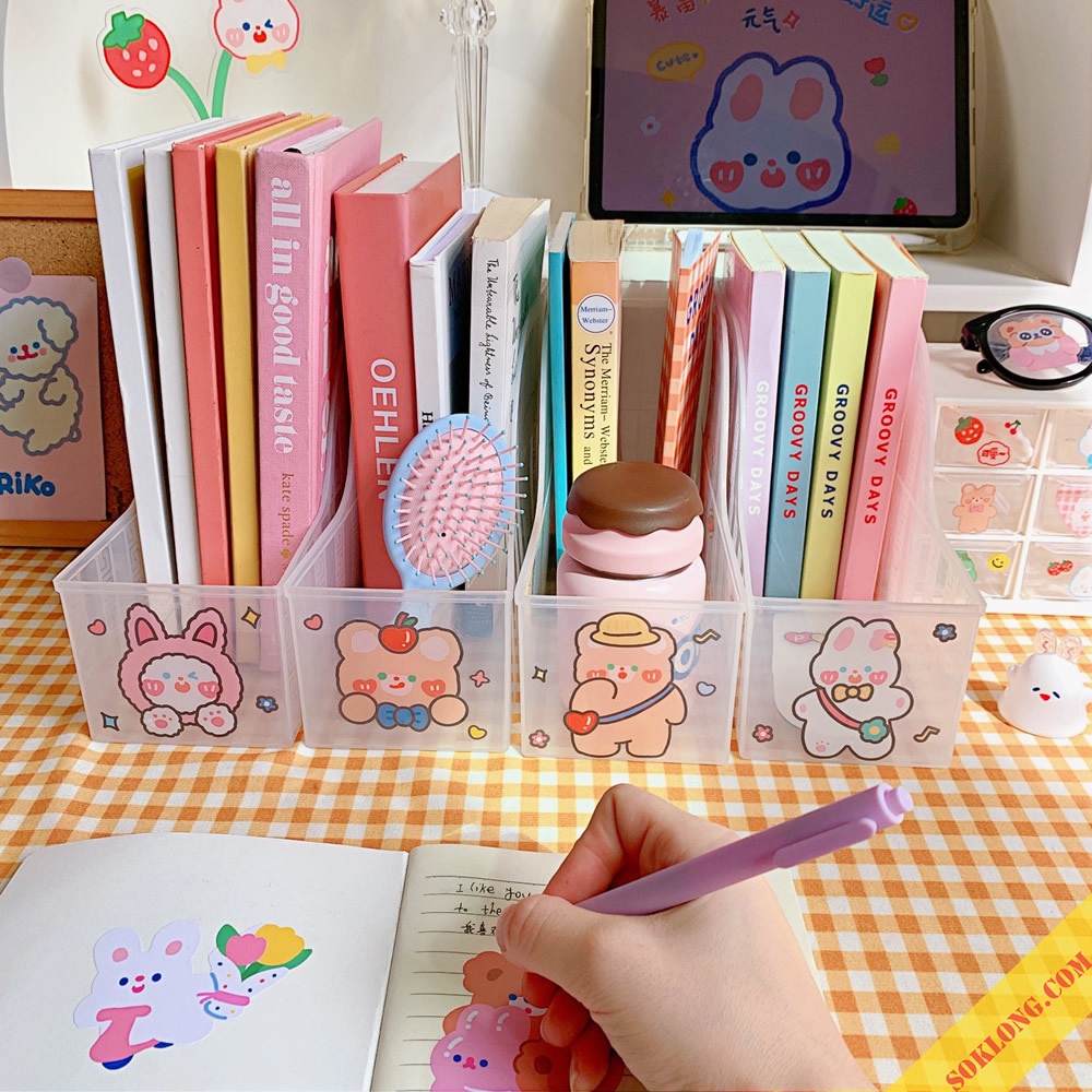 - Hộp đựng sách màu trong suốt nên bạn có thể thỏa chí trang trí sitcker, washi... giúp góc nhỏ của mình thêm dễ thương cute hơn.