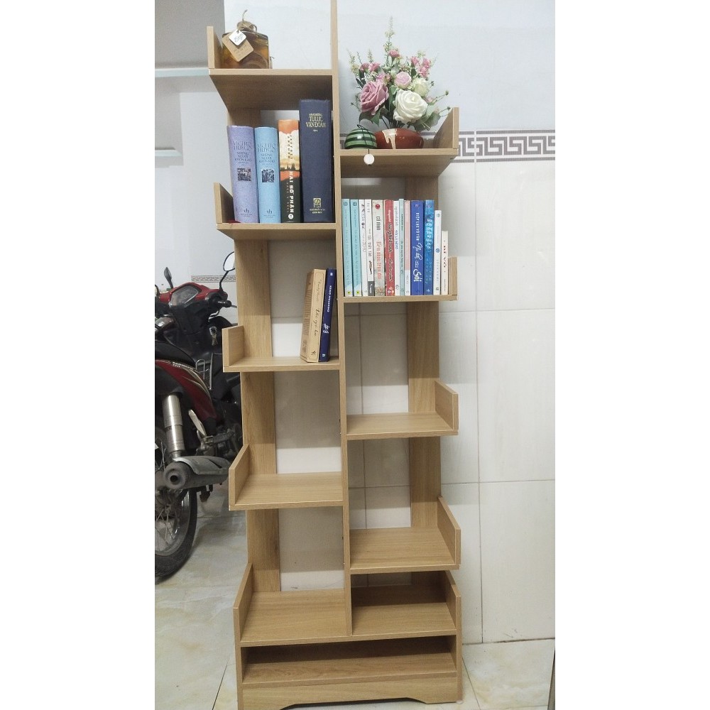 Giá sách hình cây đa tầng( 11 tầng tiện dụng) với thiết kế mới lạ, tinh tế không chỉ đơn thuần là kệ sách giúp khách hàng sắp xếp những quyển sách, tạp chí, tài liệu...được gọn gàng, ngăn nắp, đẹp mắt mà nó còn dùng trang trí cho phòng khách, phòng làm việc, phòng ngủ, phòng học tập của con đẹp hơn, sang trọng hơn. Với những đồ nhỏ xinh như đồng hồ báo thức, bình hoa, hàng decor, khung ảnh...CHẤT LIỆU , KÍCH THƯỚC:
