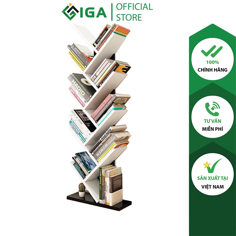 Kệ Sách Gỗ IGA Hình Cây 9 Tầng Sắp Xếp Trang Trí Nhà Đẹp - GP03---------------