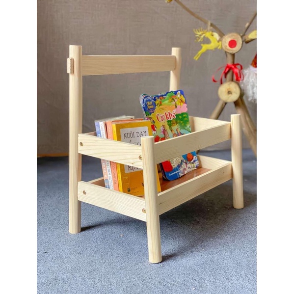 Kệ sách, kệ đựng sách cho bé -Nội thất trang trí phòng trẻ em- 100% chất liệu là gỗ thông nhập khẩu