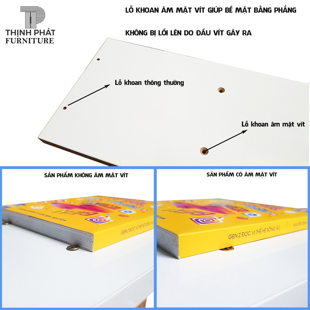 Công nghệ khoan lỗ âm mặt vít-Vít không bị lồi sau khi lắp đặt, giúp bề mặt sản phẩm bằng phẳng