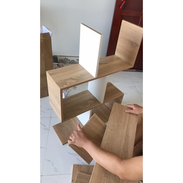 - Sản phẩm được lắp ráp bởi khách hàng,đóng nguyên kiện bìa carton dày 3 lớp bao gồm kệ sách , ốc vít của kệ sách.