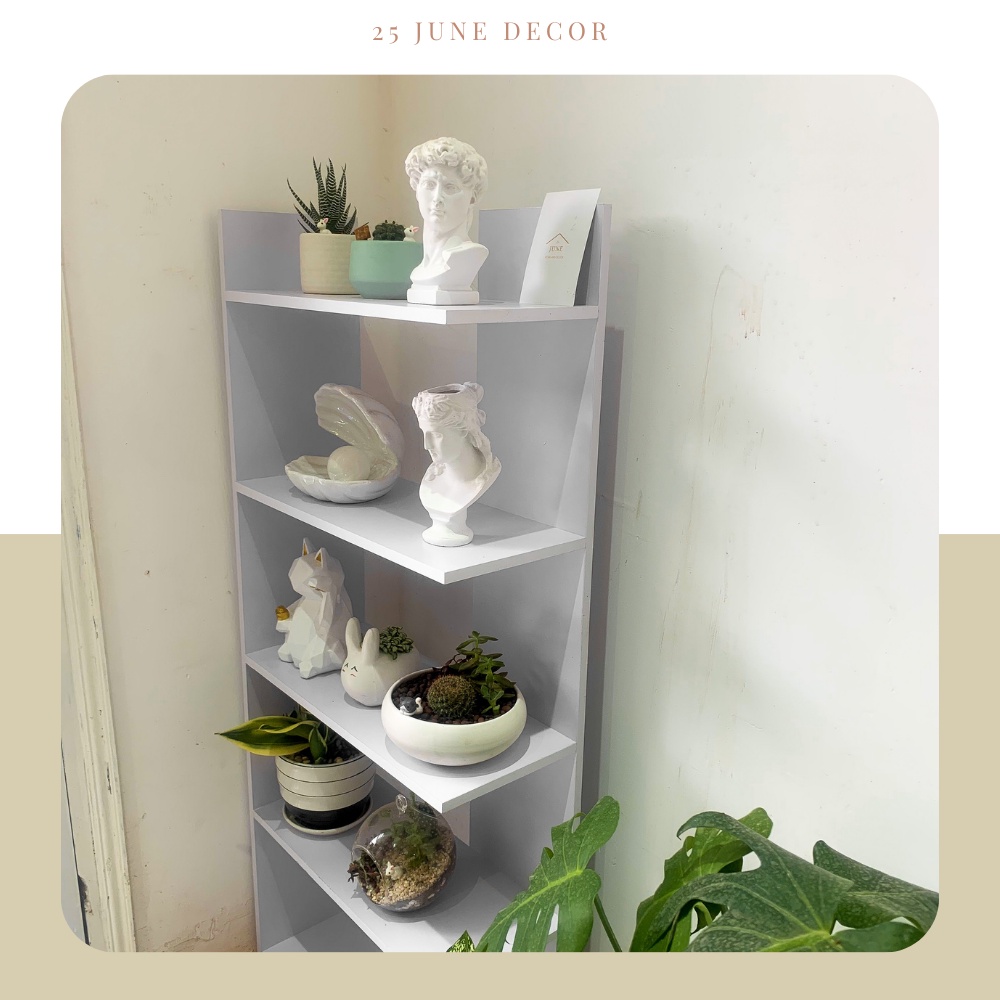 Nhà cửa & Đời sống > Nội thất > Kệ & Giá || Kệ sách Miễn ship Kệ Góc Tường 5 tầng gỗ MDF cao cấp chịu lực cao đa năng dễ lắp đặt - 25 June DecorCòn hàng