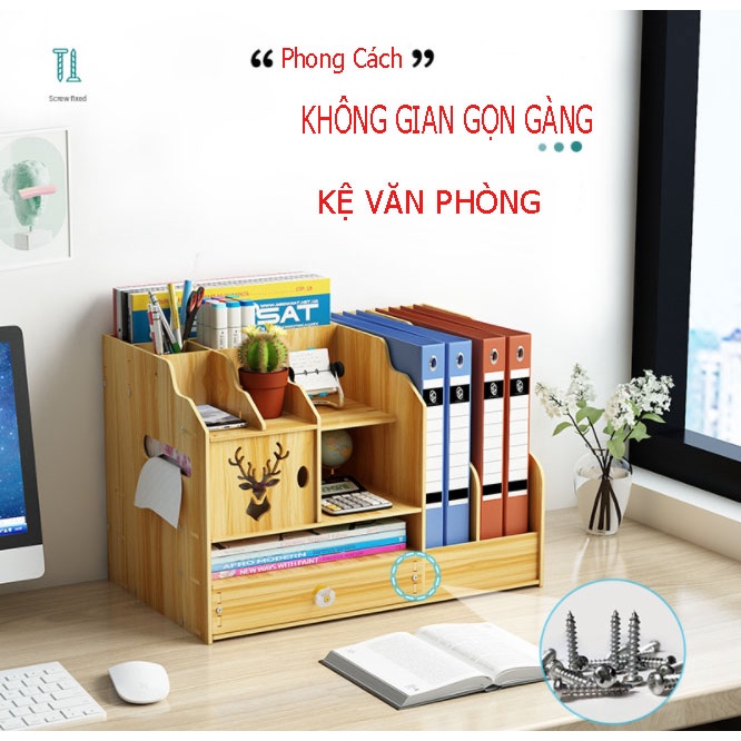 + Sản phẩm kệ sách để bàn vừa giúp bạn sắp xếp gọn gàng ngăn nắp góc học tập , không gian làm việc của bạn một cách gọn gàng hơn