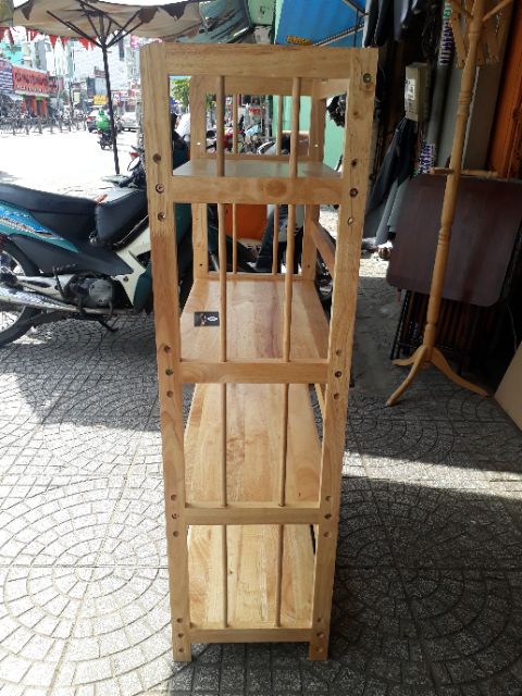 Kệ sách gỗ 4 tầng cao 1m2, ngang 60cm, mặt sâu 34cm, được gia công bằng gỗ cao su, xử lý chống mối mọt, bên hông kệ có 3 lỗ ở mỗi tầng để tăng đưa lên xuống...👉 Lưu ý: Hàng đặt qua app giao tới chưa ráp nha Quý khách ơi. Vì hàng ráp rồi cồng kềnh dễ gẫy, phí ship rất cao và nhà vận chuyển chưa chắc nhận vận chuyển. Mong quý thông cảm dùm shop.